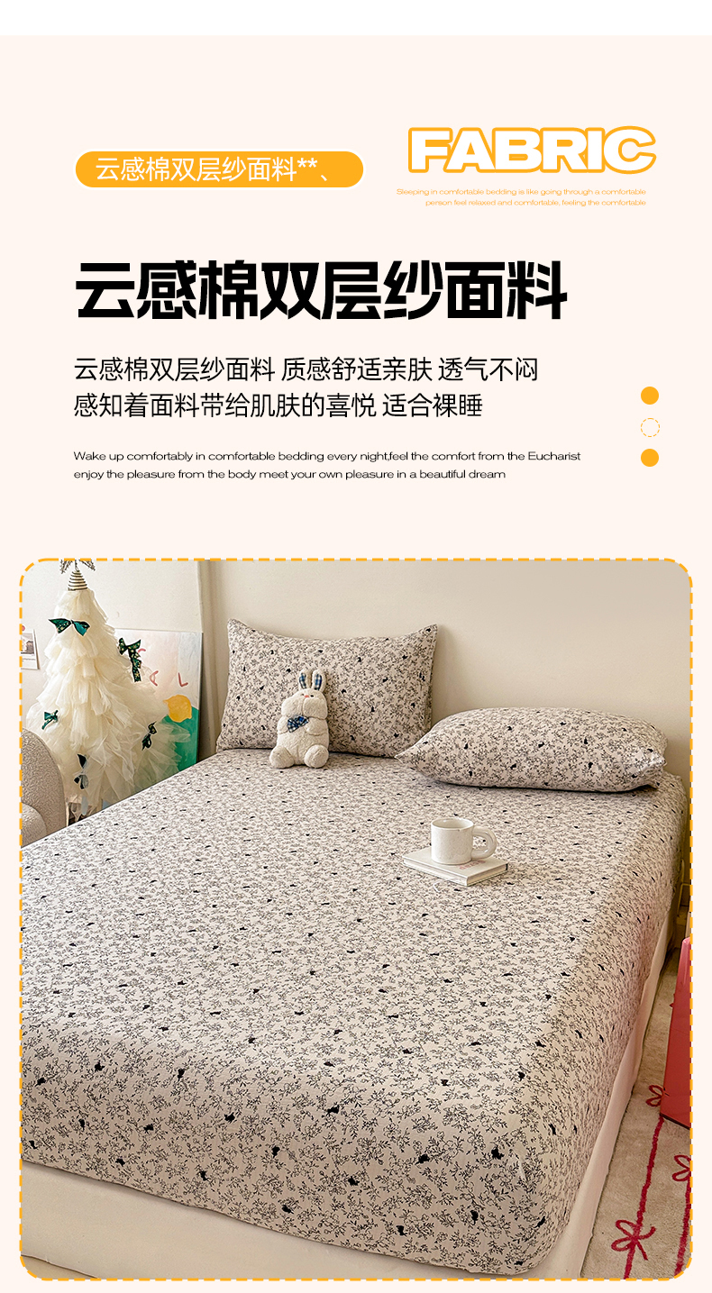 温眠家纺 2025春夏新款云感棉双层纱床笠单床笠枕套三件套场景二 兔与晚风