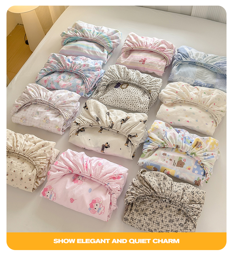 • 91家纺网 家纺一手货源 找家纺 (总)温眠家纺 2026新款古法水洗棉加厚高克重双层纱单床笠床笠单件单品床笠,条纹南瓜,彩波波,蛋糕小猫,扶桑花未落,花韵,绮梦花间,素影,挽星入梦,汪星人,星星人,樱之桃桃,云间花述,织梦,紫菀