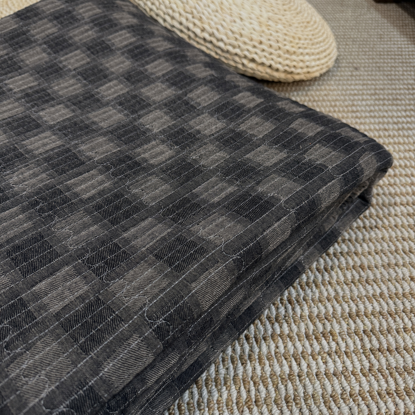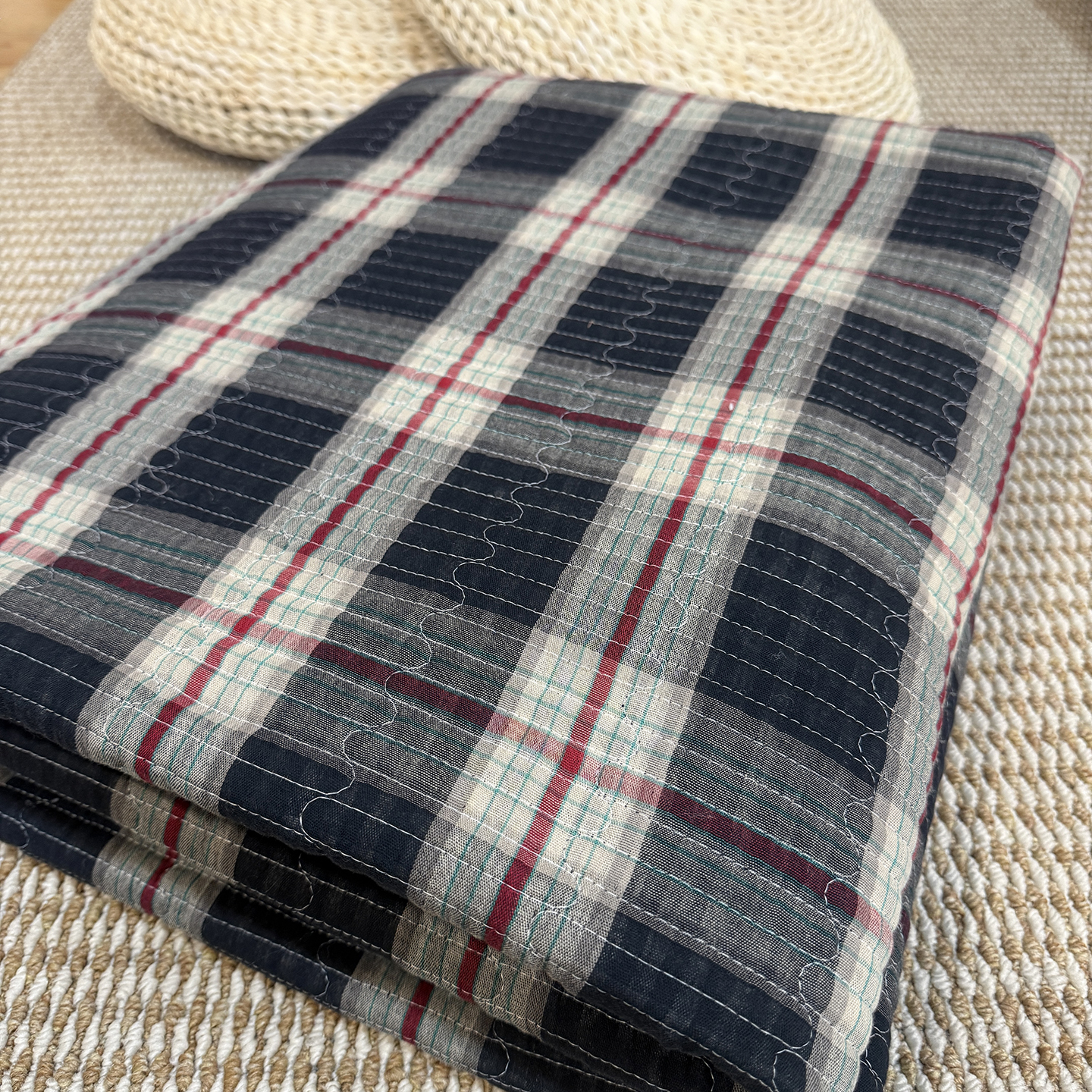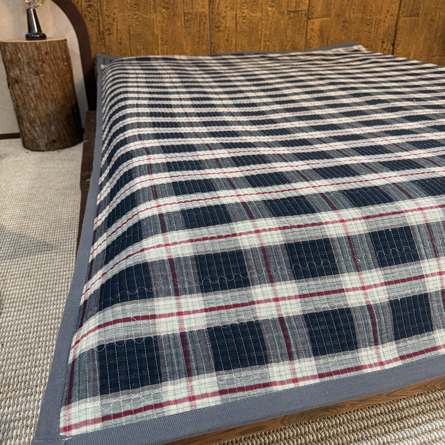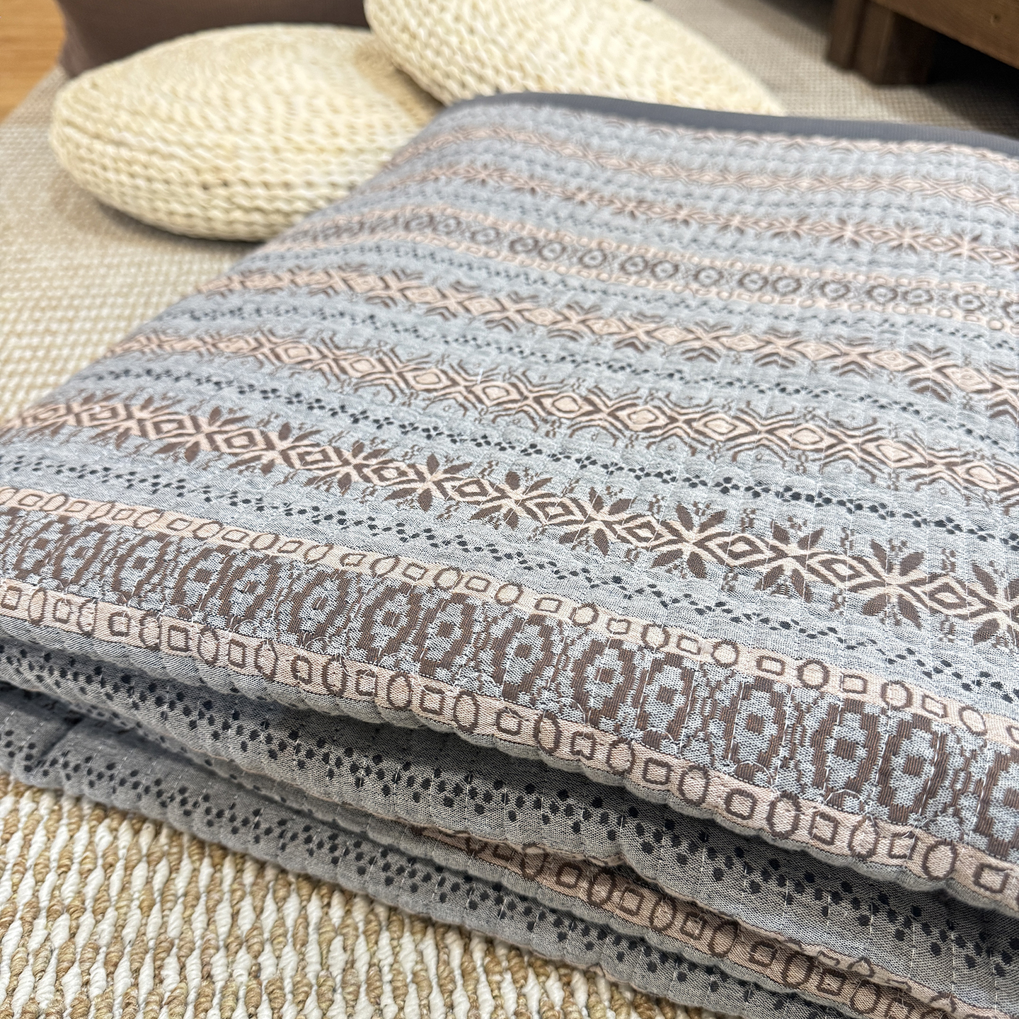商品名称:仰望棉麻双层纱供应链 2026新款亲肤棉加绒床盖 墨染朱华