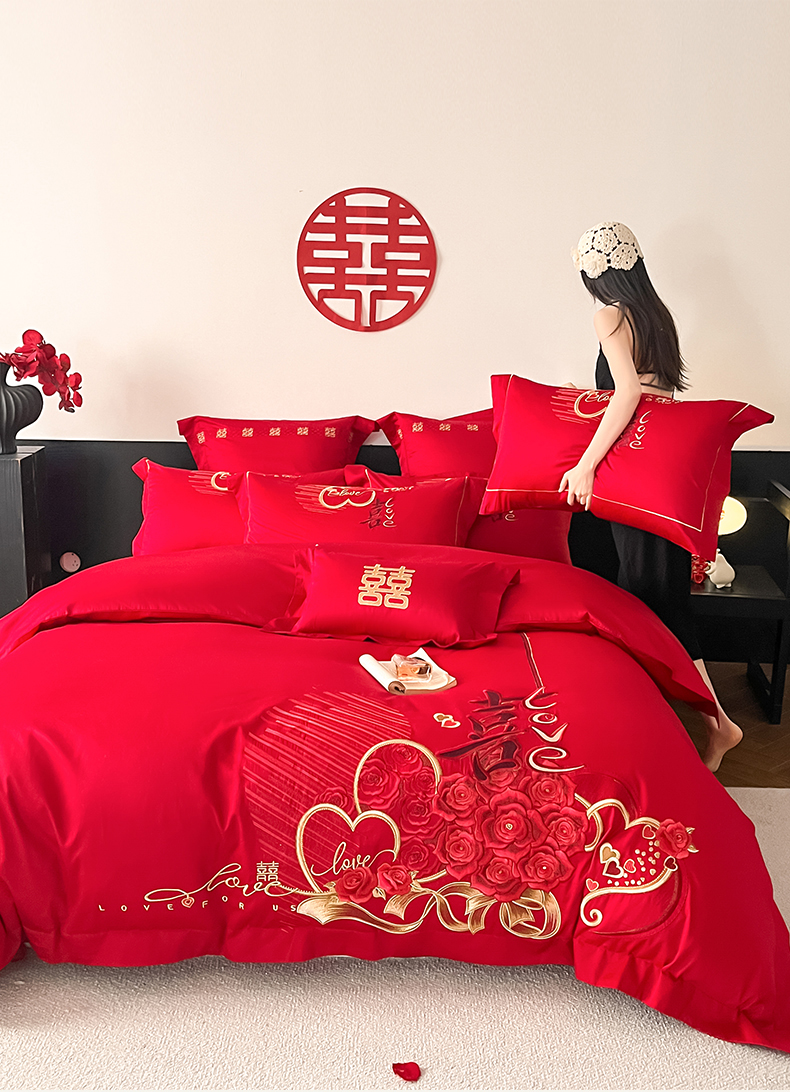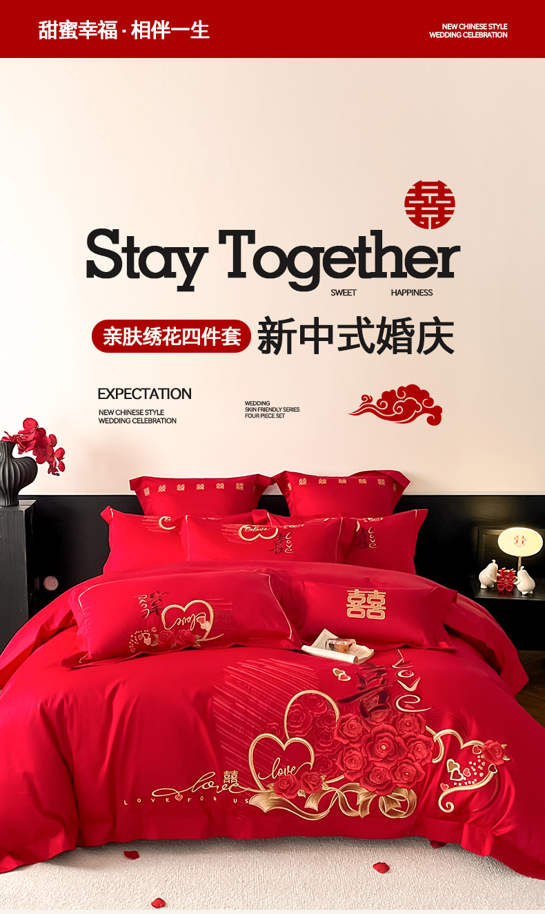 (总)置顶家纺 2026新款新中式亲肤婚庆绣花四件套