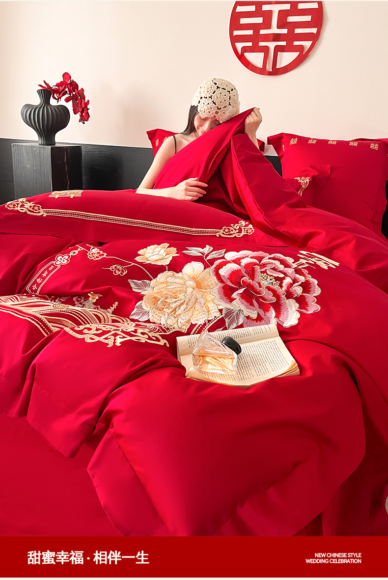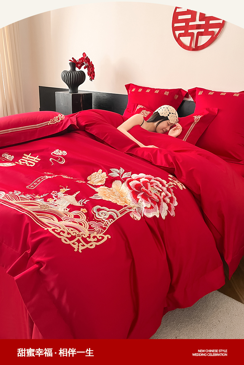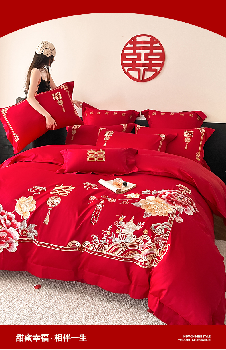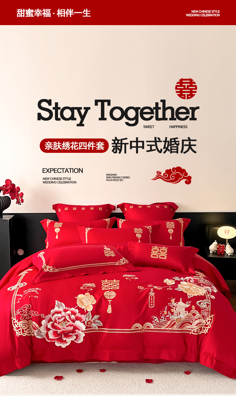 当前位置: 91家纺网 > 商品网购 > 床品套件 > 四件套 > 婚庆四件套 > 置顶家纺 2026新款新中式亲肤婚庆绣花四件套 新婚大吉-大红