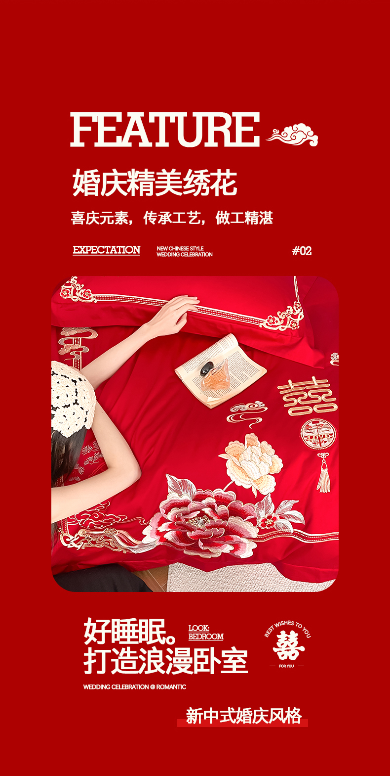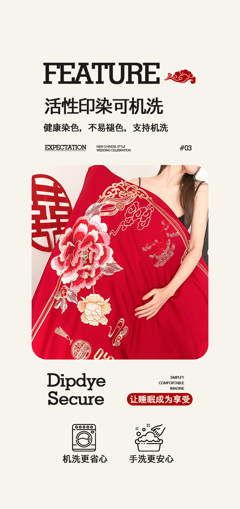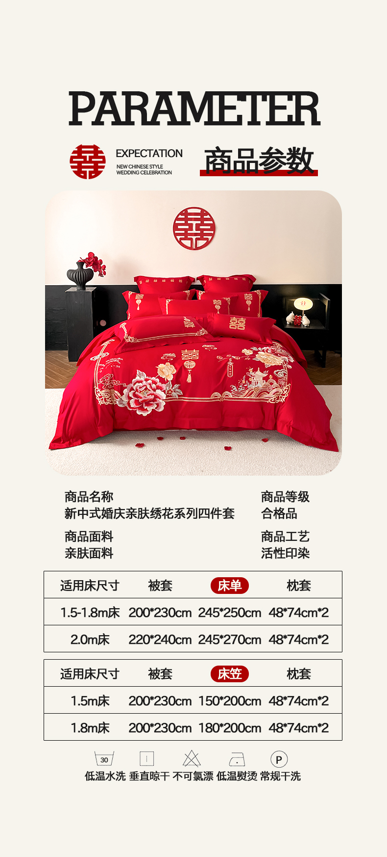 当前位置: 91家纺网 > 商品网购 > 床品套件 > 四件套 > 婚庆四件套 > 置顶家纺 2026新款新中式亲肤婚庆绣花四件套 新婚大吉-大红