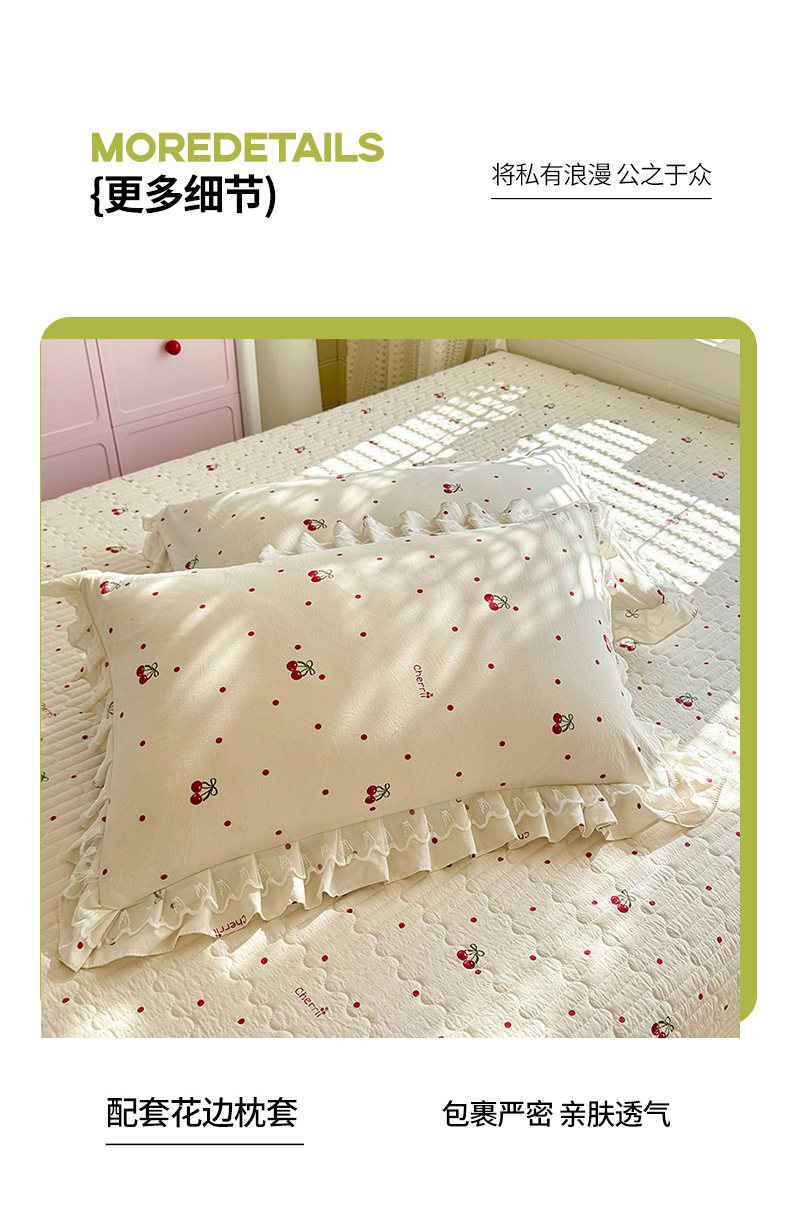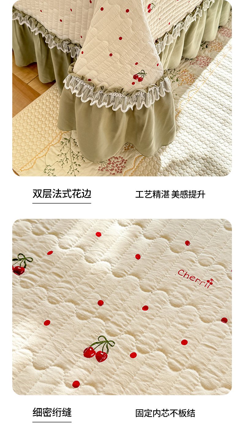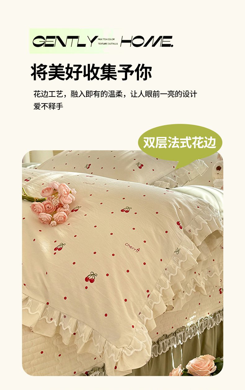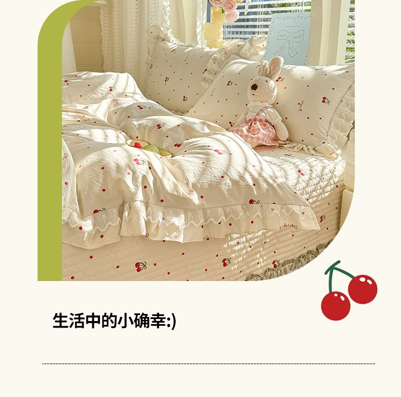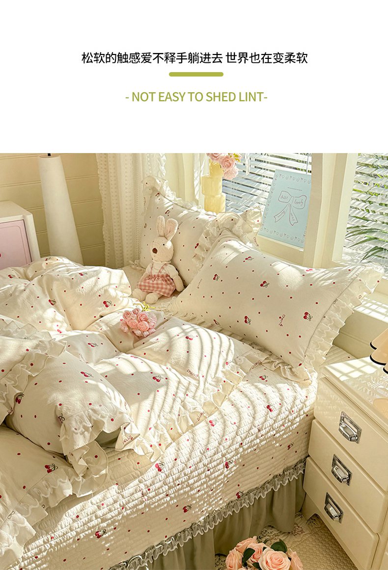 当前位置: 91家纺网 > 商品网购 > 床品套件 > 四件套 > 其它四件套 > 韩约家纺 2026新款韩式双层花边古法棉感床盖四件套 甜心樱桃