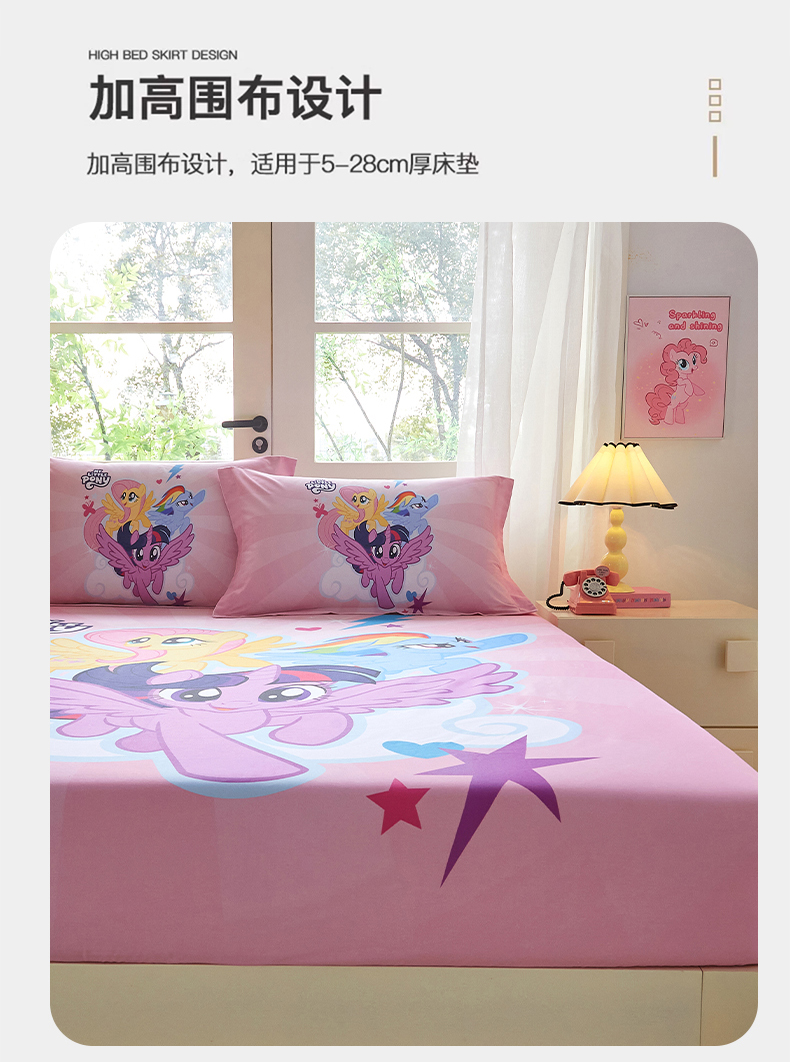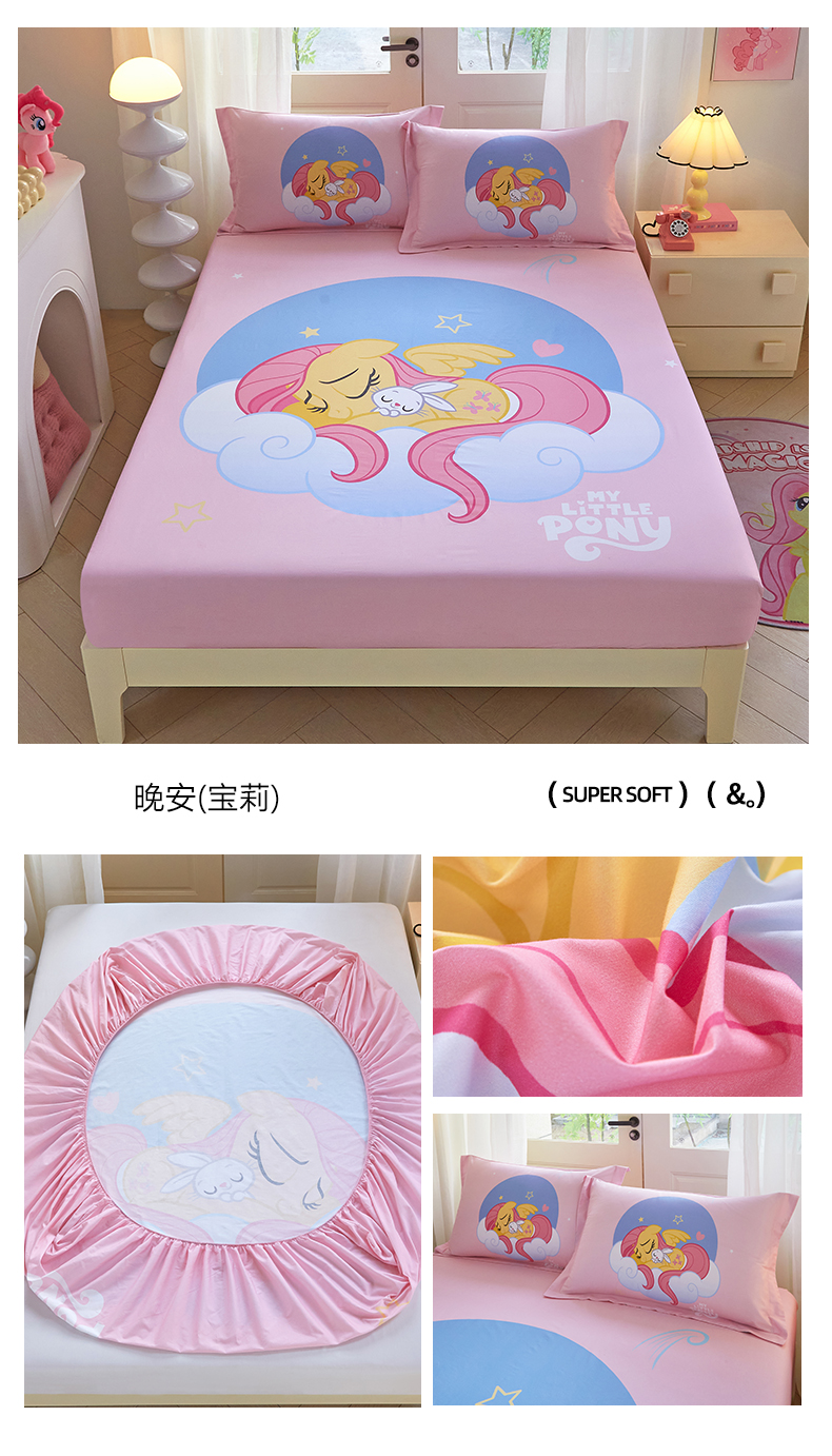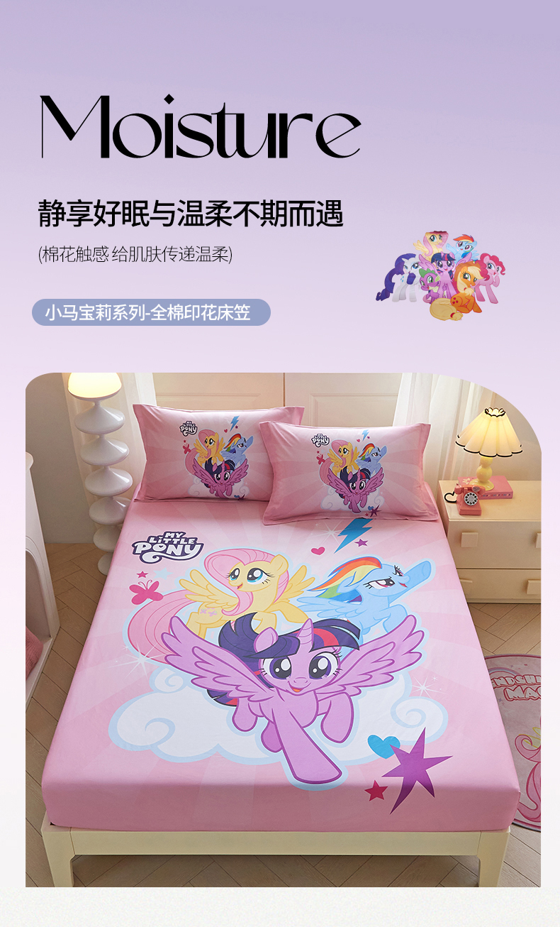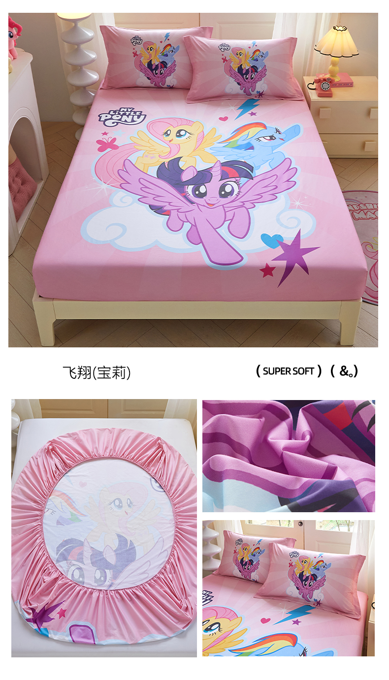 • 91家纺网 家纺一手货源 找家纺 蘭菲家纺 2026新款全棉纯棉大版卡通单床笠床笠单件-小马宝莉 飞翔.宝莉