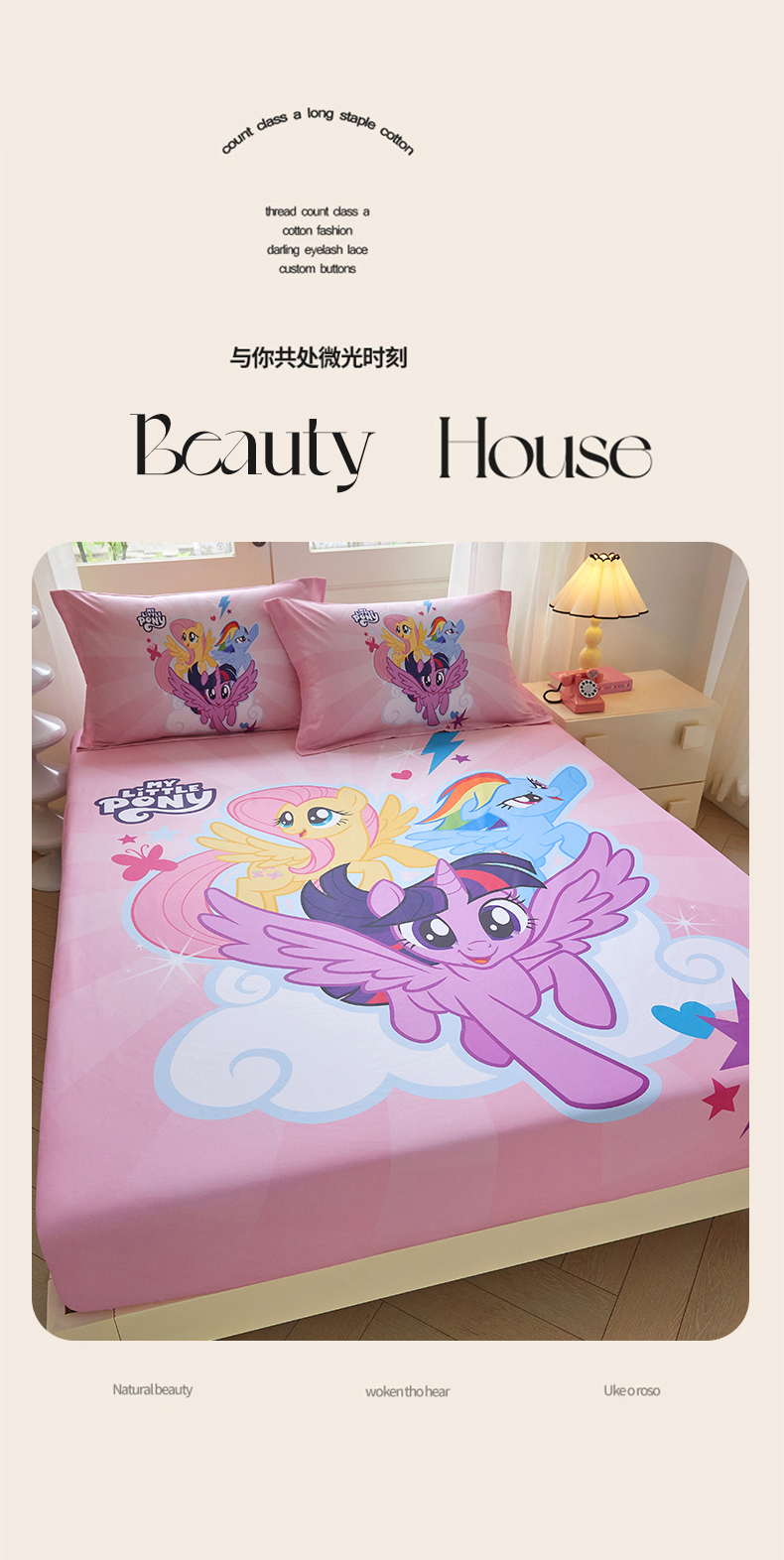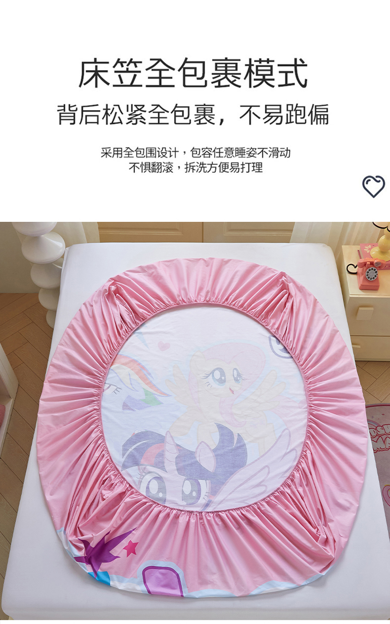 蘭菲家纺 2026新款全棉纯棉大版卡通单床笠床笠单件-小马宝莉 飞翔.宝莉