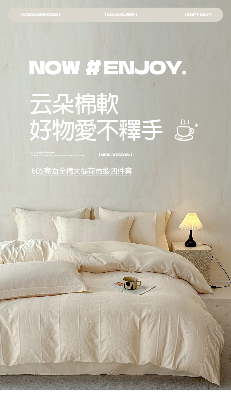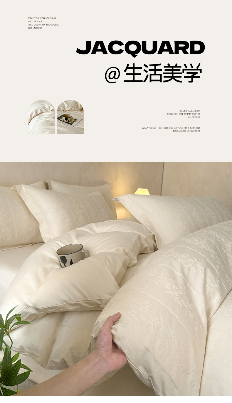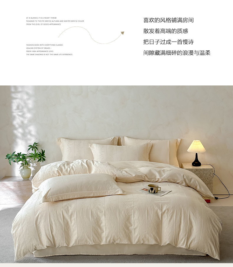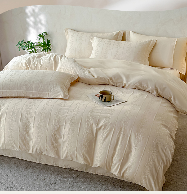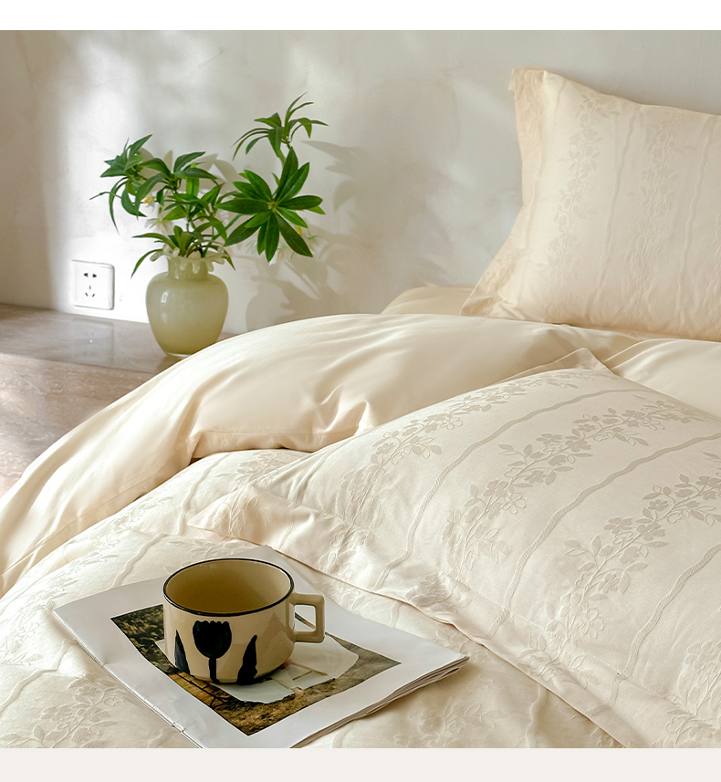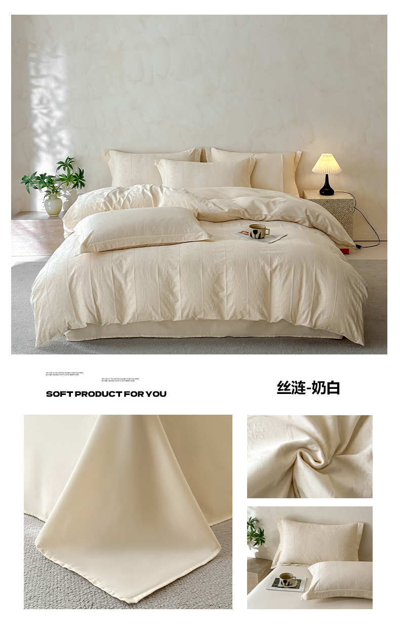 当前位置: 91家纺网 > 商品网购 > 床品套件 > 四件套 > 贡缎全棉四件套 > 莱茵家居 2026新款A类60支长绒棉纯棉提花贡缎大提花四件套光泽绸缎感轻奢风 丝涟-奶白