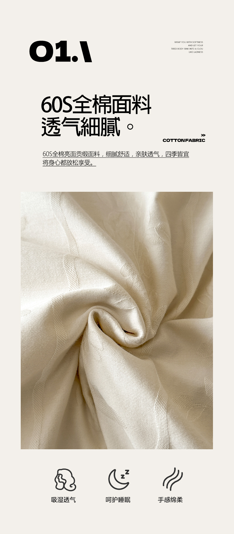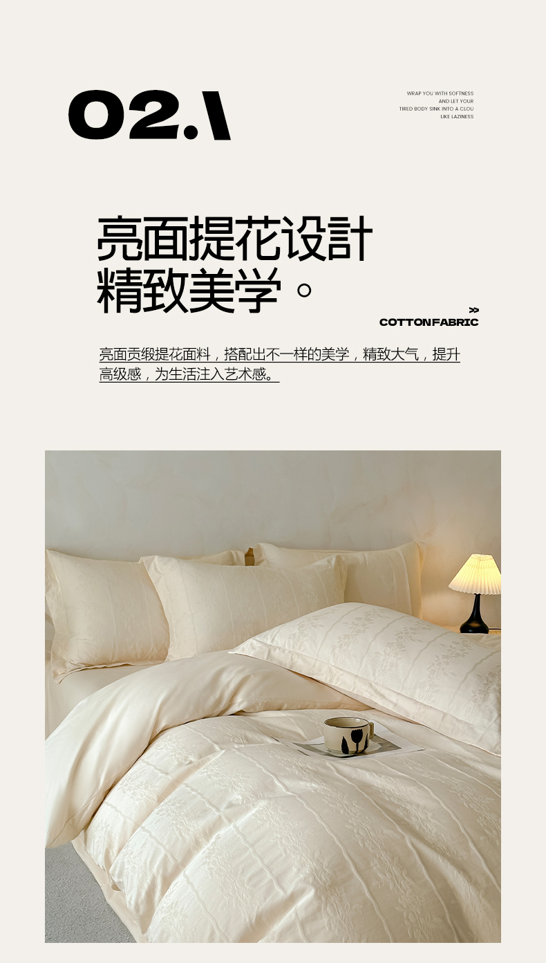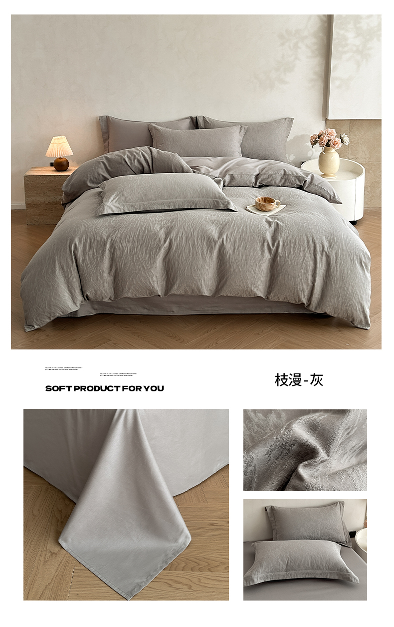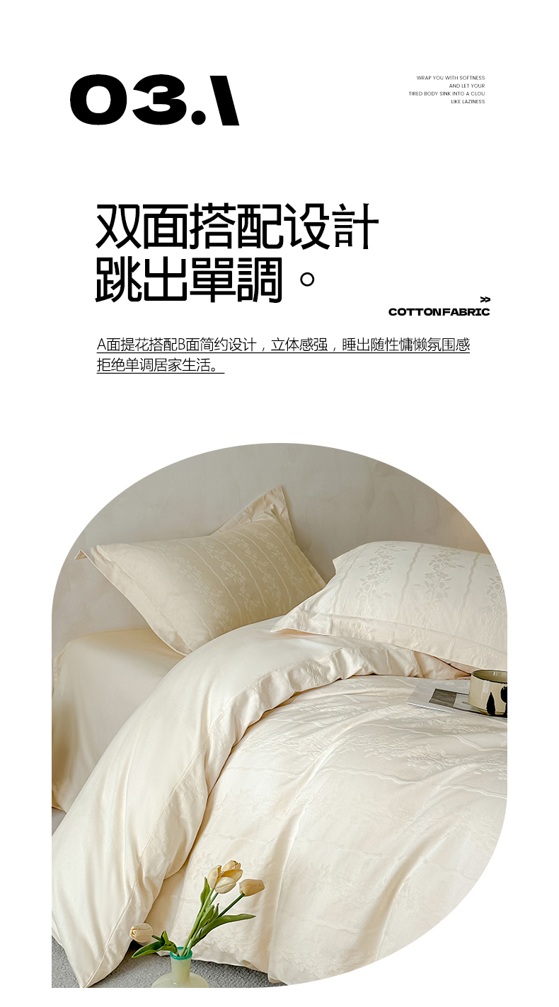 当前位置: 91家纺网 > 商品网购 > 床品套件 > 四件套 > 贡缎全棉四件套 > 莱茵家居 2026新款A类60支长绒棉纯棉提花贡缎大提花四件套光泽绸缎感轻奢风 丝涟-奶白