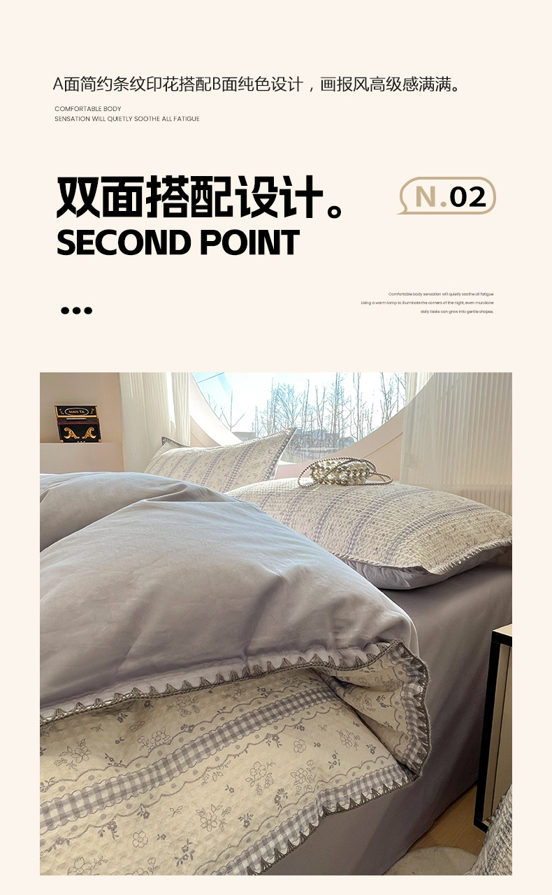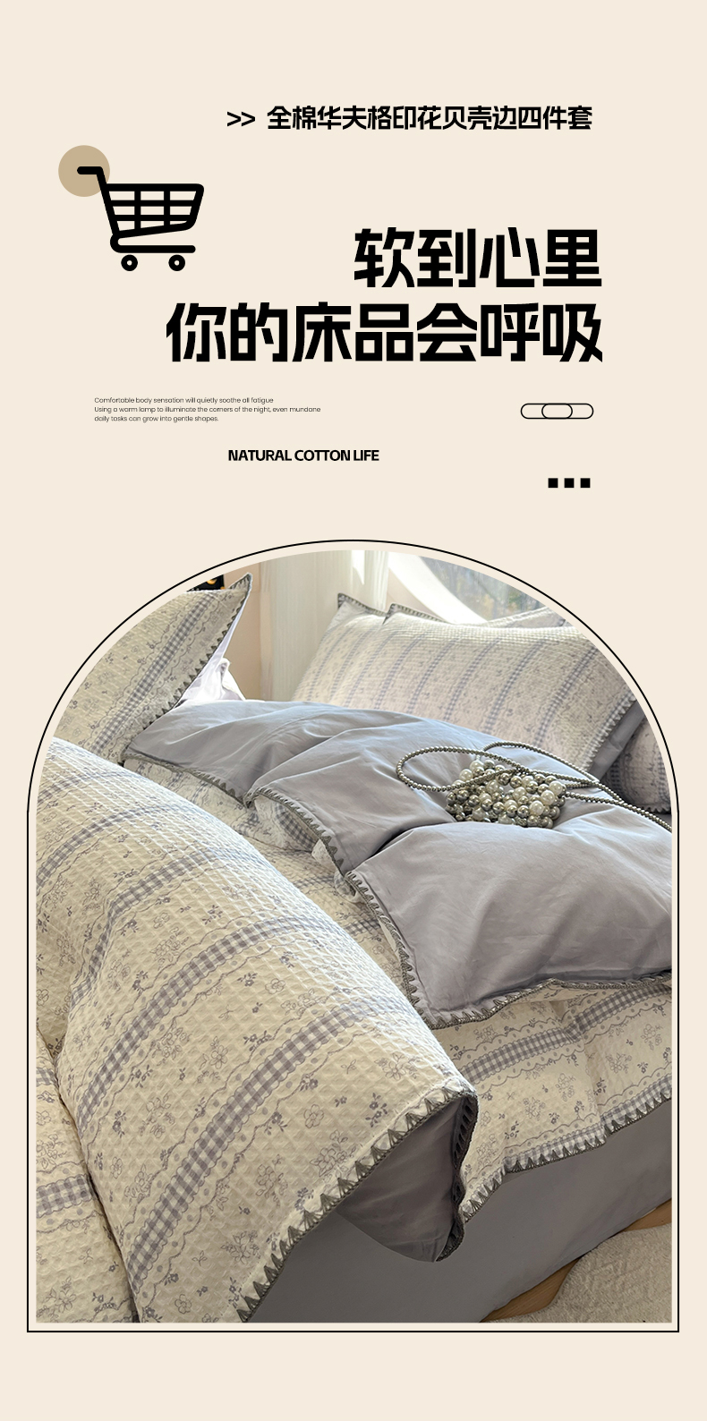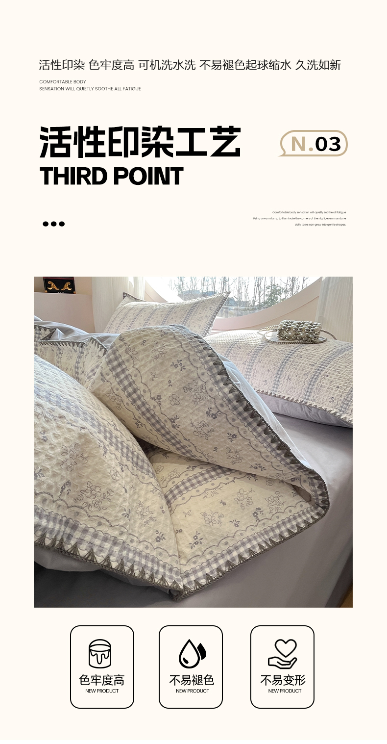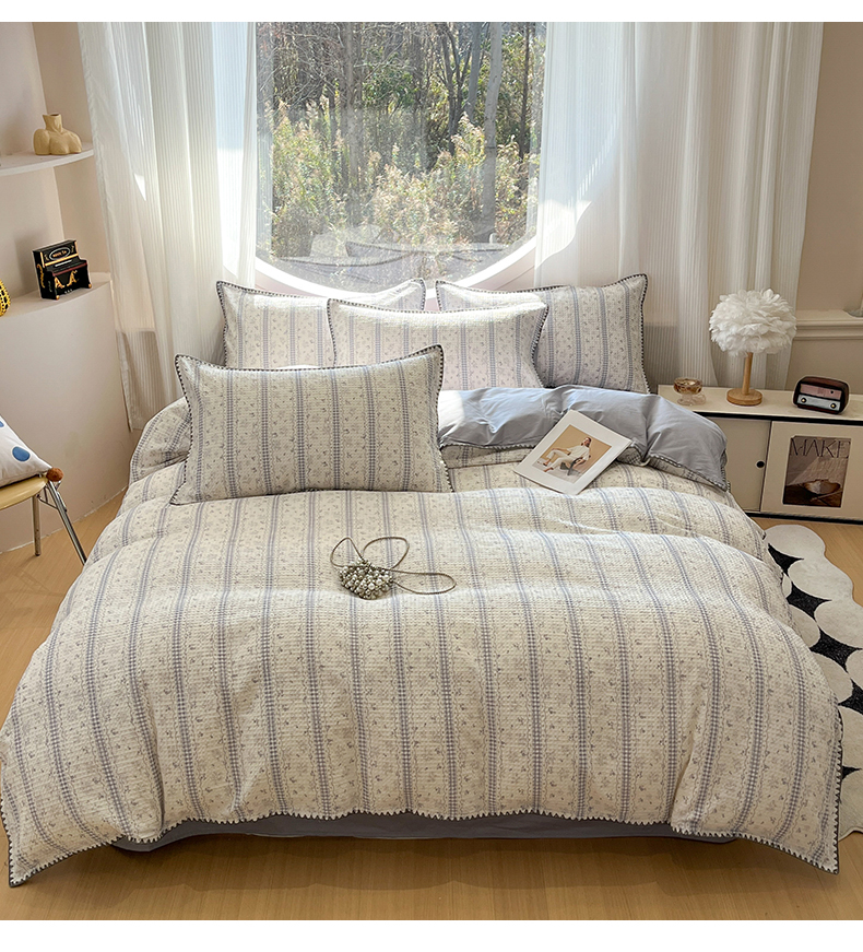 当前位置: 91家纺网 > 商品网购 > 床品套件 > 四件套 > 全棉普通四件套 > 莱茵家居 2026新款A类全棉华夫格印花贝壳边套件-华夫系列 华夫-丁香