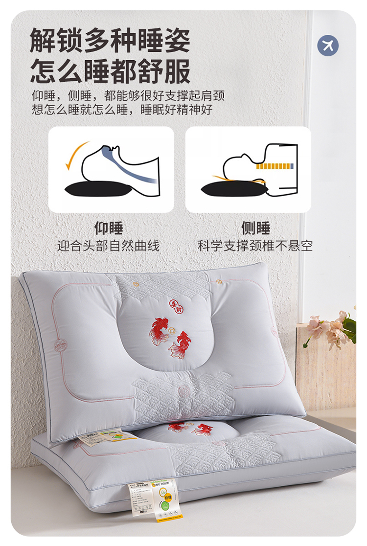 商品名称:雅晨枕芯 2026新款绣花款遇见锦鲤分区定型枕学生枕头成人枕芯 遇见锦鲤-粉色单只装