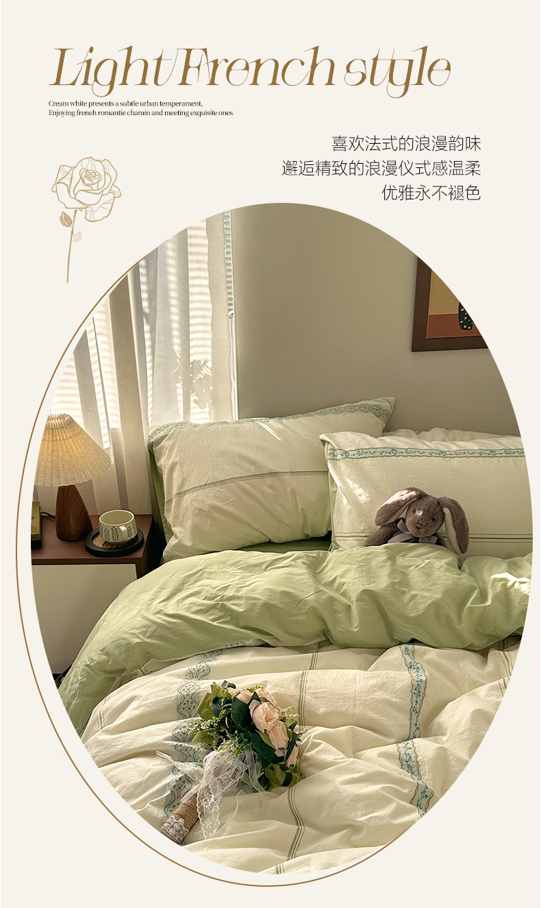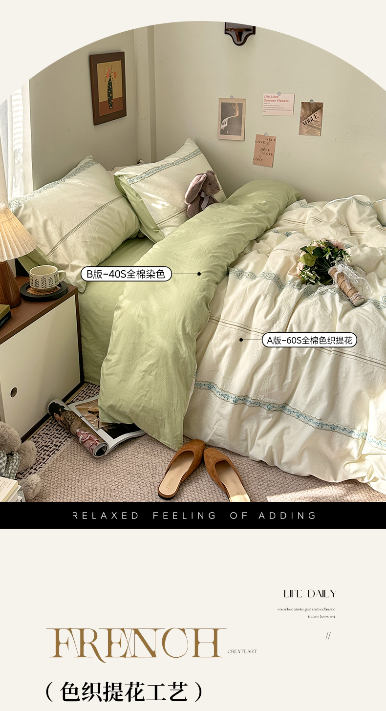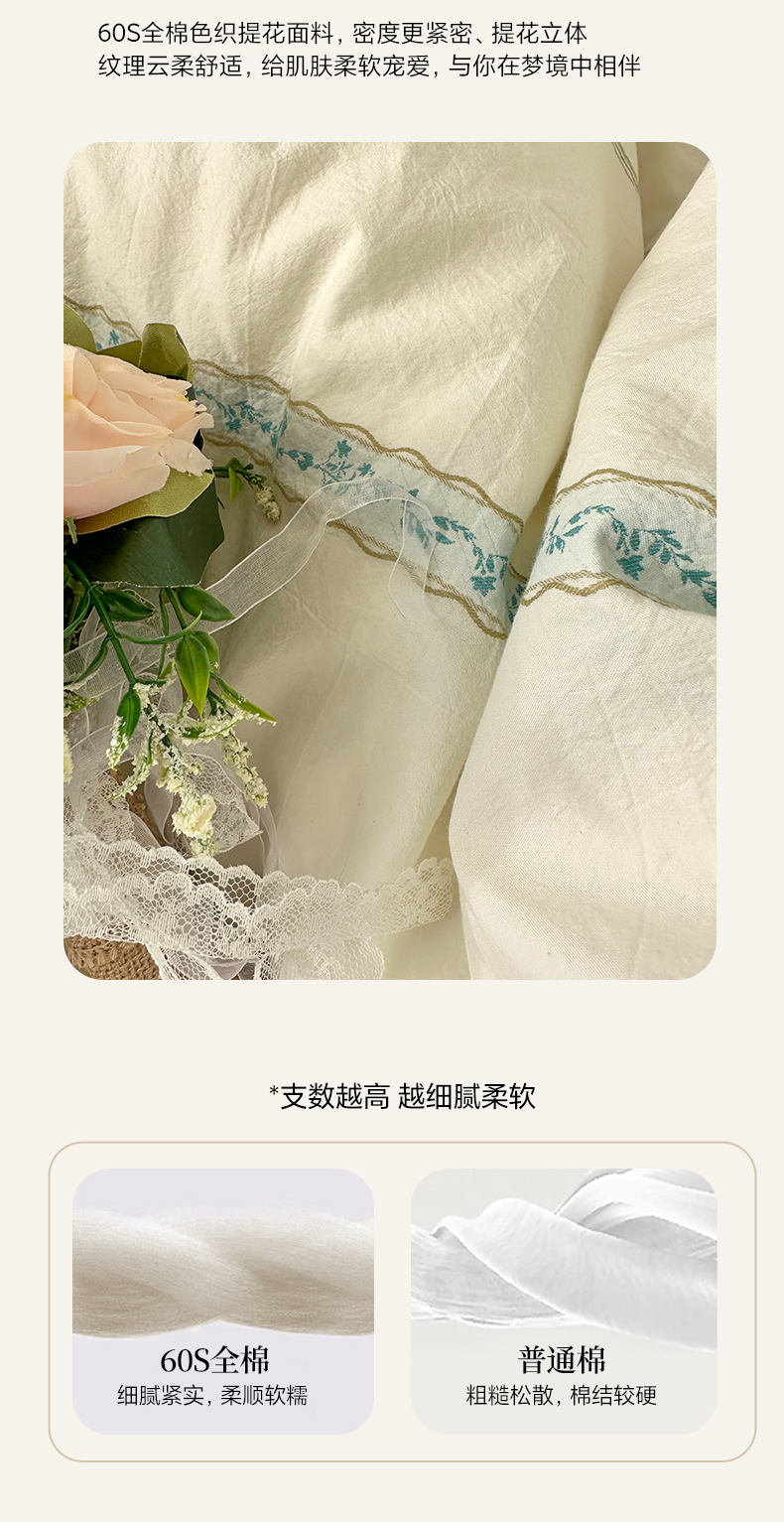 当前位置: 91家纺网 > 商品网购 > 床品套件 > 四件套 > 全棉普通四件套 > 艾咪-Amy ntmy 2026新款法式复古风全棉纯棉色织提花四件套-繁花 繁花绿