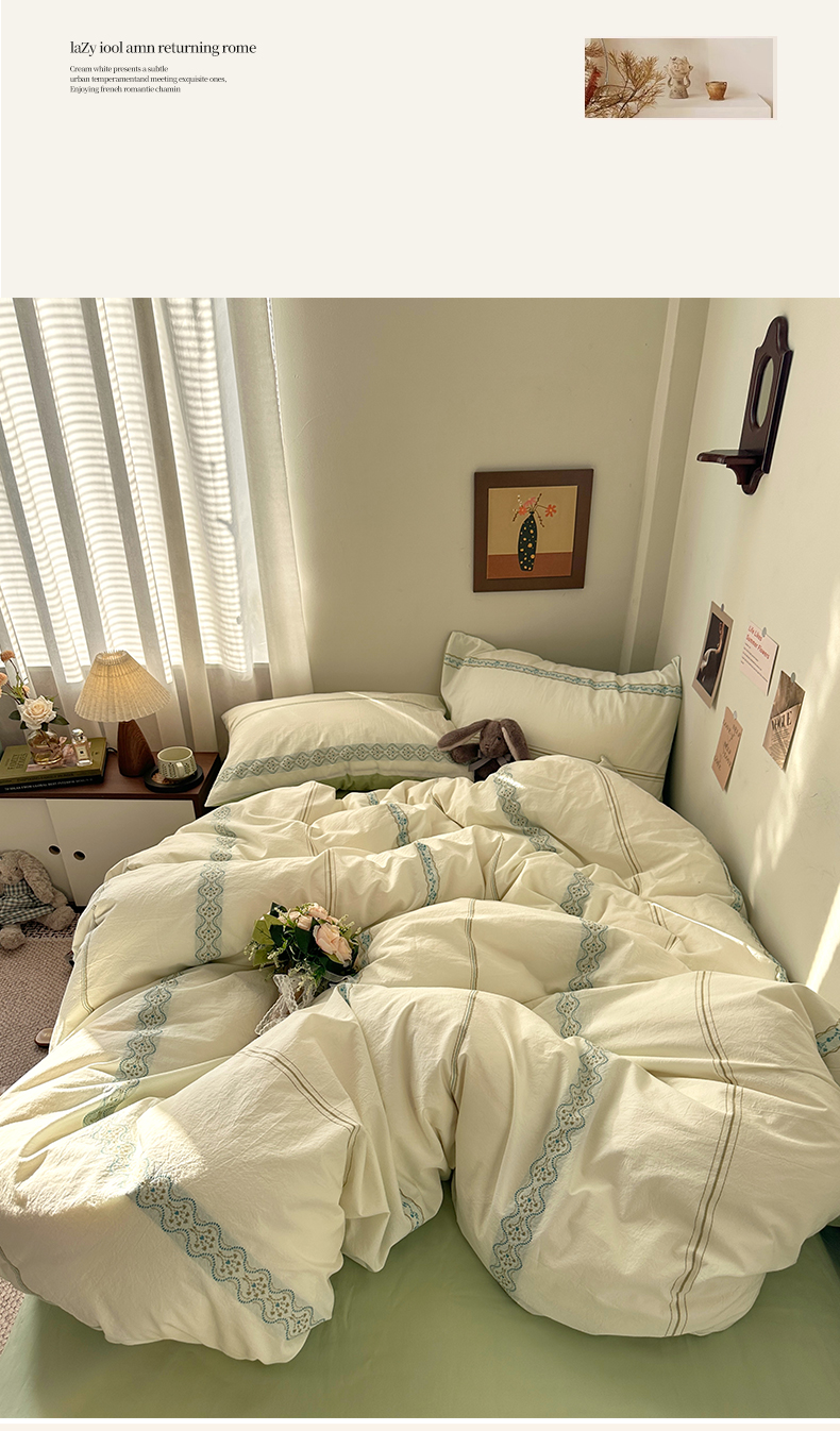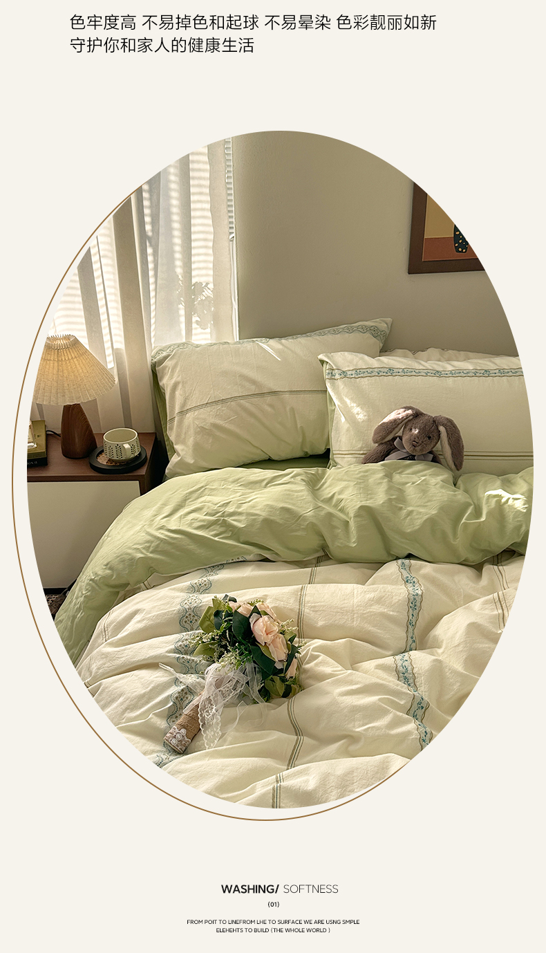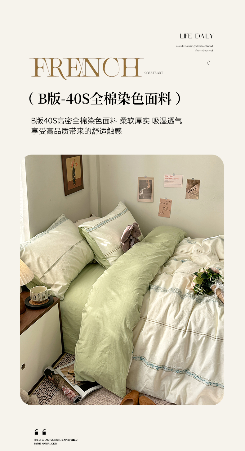 当前位置: 91家纺网 > 商品网购 > 床品套件 > 四件套 > 全棉普通四件套 > 艾咪-Amy ntmy 2026新款法式复古风全棉纯棉色织提花四件套-繁花 繁花绿