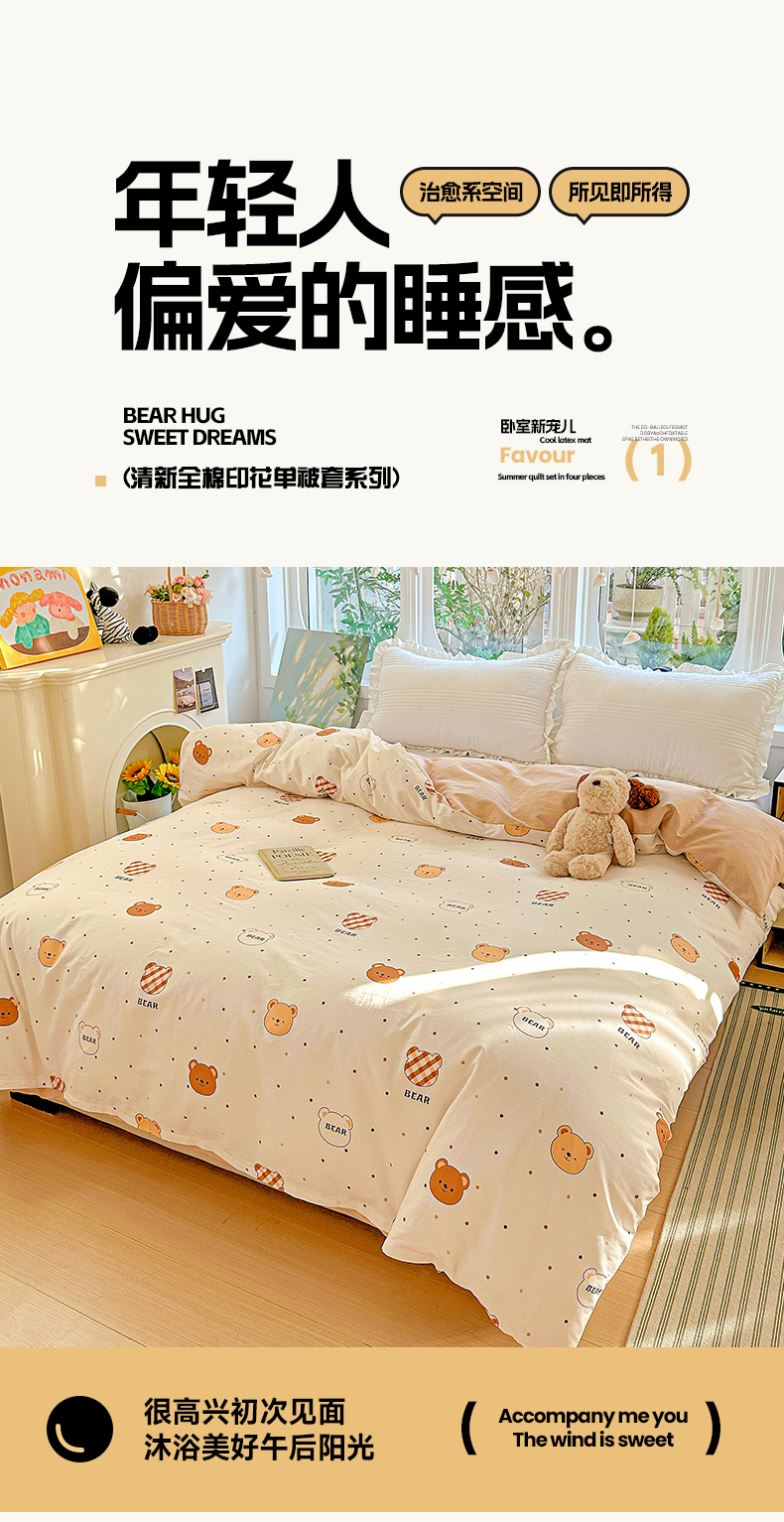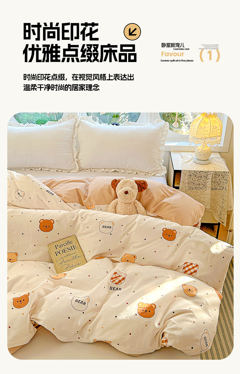 (总)恩泽家纺 2026春夏新款全棉纯棉12868印花四件套(提供买家秀,预留缩水率),花丛小兔子,草莓季,多彩世界,护花使者,花季少女,花梦间,极简主义,凯蒂宝贝,可爱喵,拉菲特,洛琳粉,绿格小熊,帽子小狗,喵喵,魔法帽,奶油阿布,派对小狗,苹果小猫咪,时尚猫咪粉,田园小花,碎花兔兔,甜小桔,甜心汪·咖,甜心汪·蓝,晚樱,小狗乐乐,小精灵,小萌物,小淘气,小甜心,小熊布丁,小熊猫,星动情节,星梦童话,星愿萌犬,熊猫与牛油果,学院风,雪纳瑞,樱桃派,樱桃兔,樱桃小熊,宅宅女孩