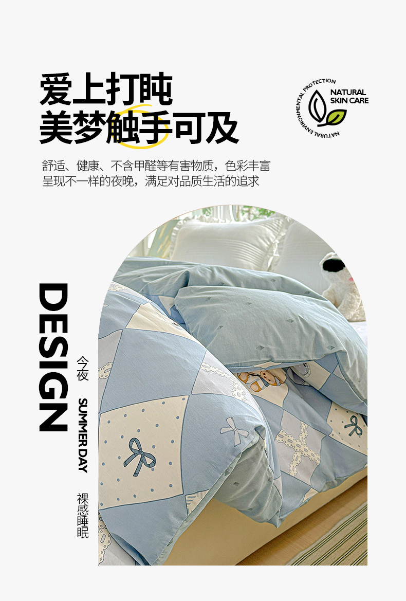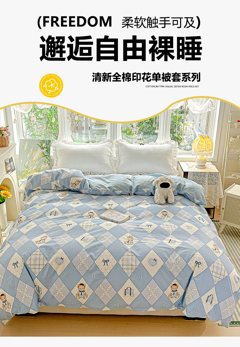 恩泽家纺 2026春夏新款全棉12868印花四件套单品系列-单被套-提供买家秀,预留缩水率 学院风