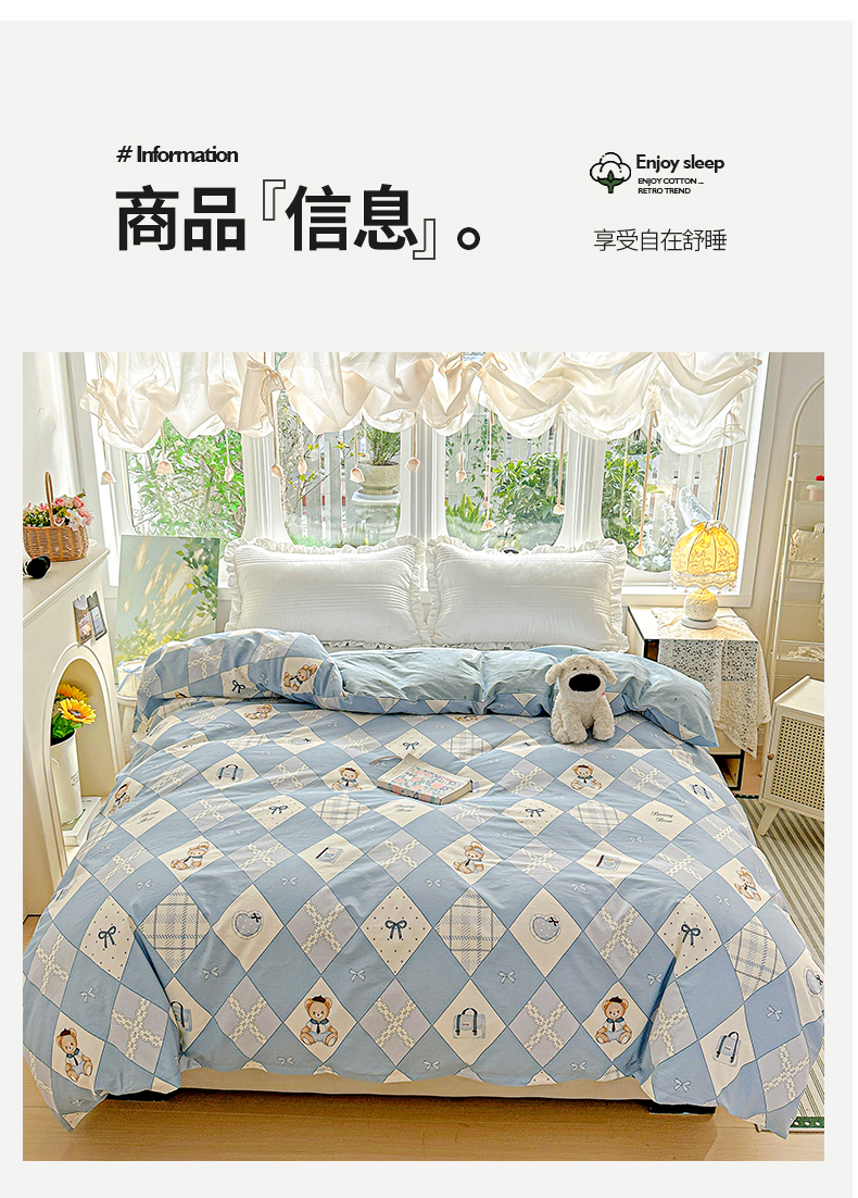 • 91家纺网 家纺一手货源 找家纺 恩泽家纺 2026春夏新款全棉12868印花四件套单品系列-单被套-提供买家秀,预留缩水率 学院风