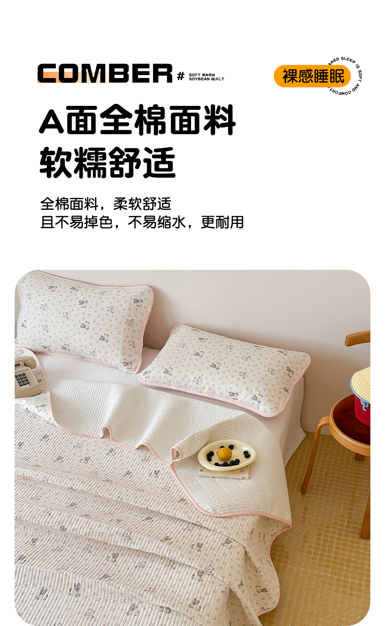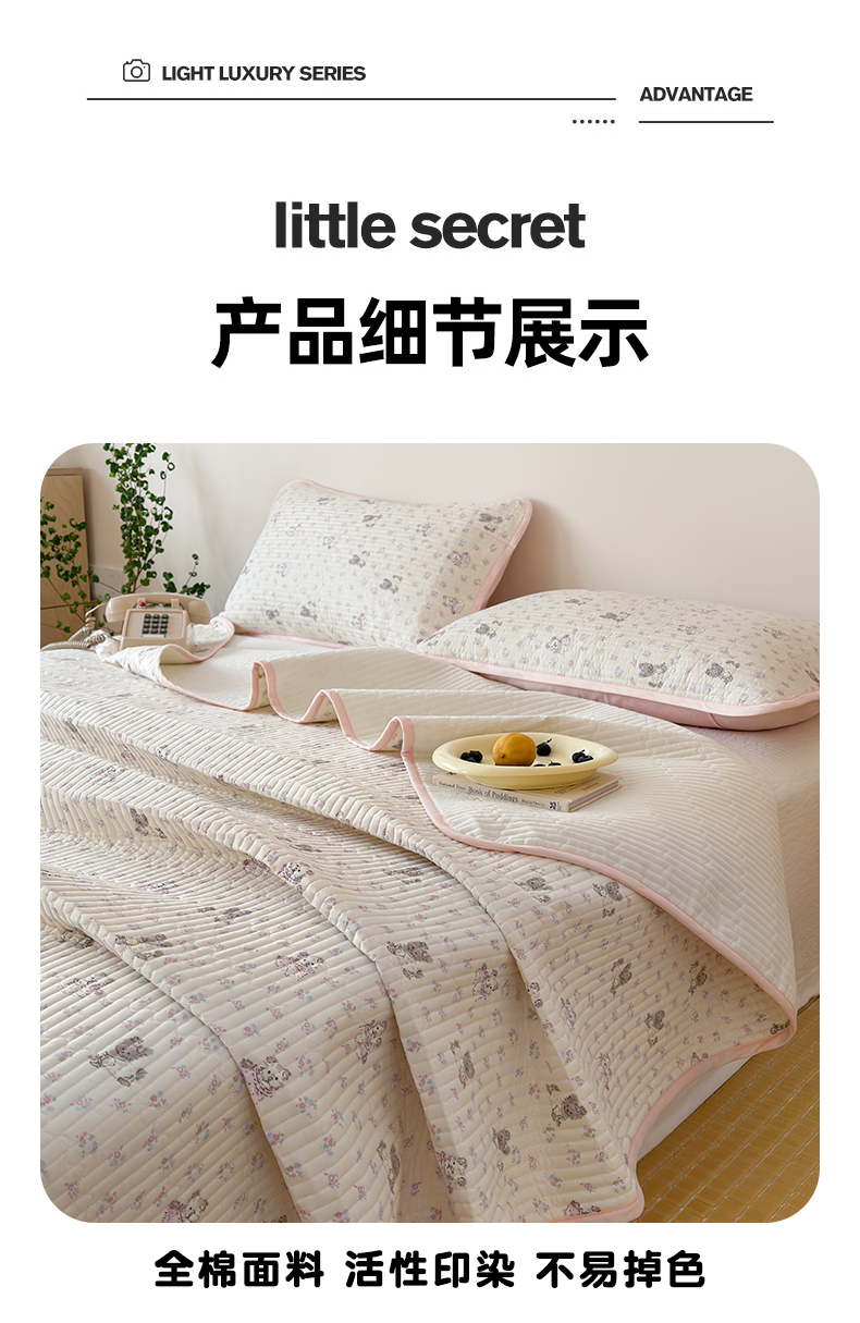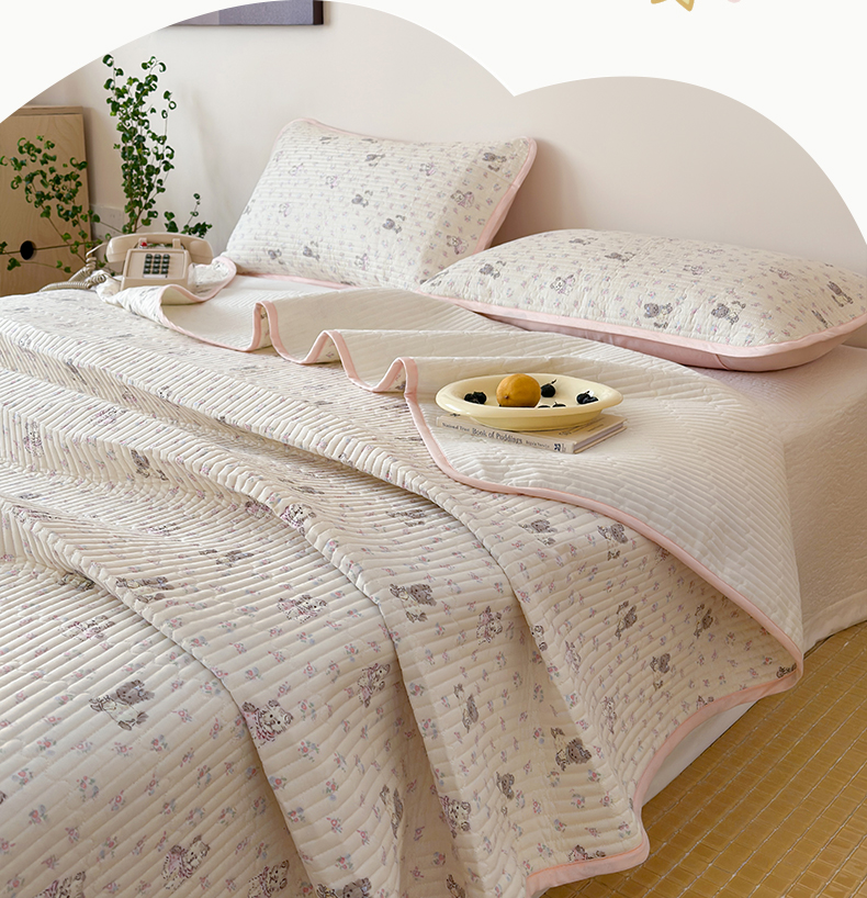 • 91家纺网 家纺一手货源 找家纺 漫时光 2026新款纯棉小清新棉花夹层床盖 可米宝贝