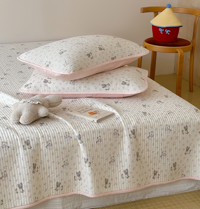 (总)漫时光 2025新款正面纯棉反面宝宝绒印花夹棉砂洗床盖三件套,班尼熊,风铃小兔,花间小兔,花园兔,开心屋,蕾丝小狗,猫咪派对,曲奇小狗,条纹熊,汪汪曲,小狗日记,小伙伴,小熊猫