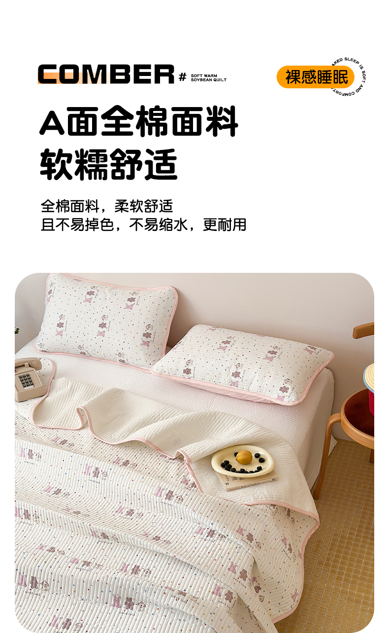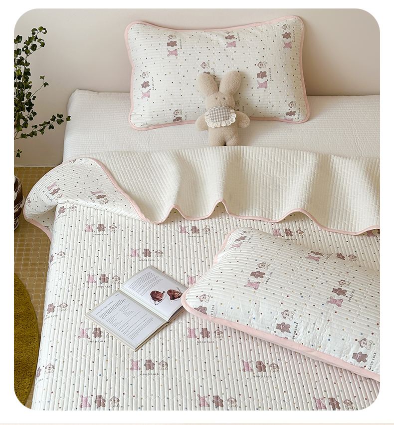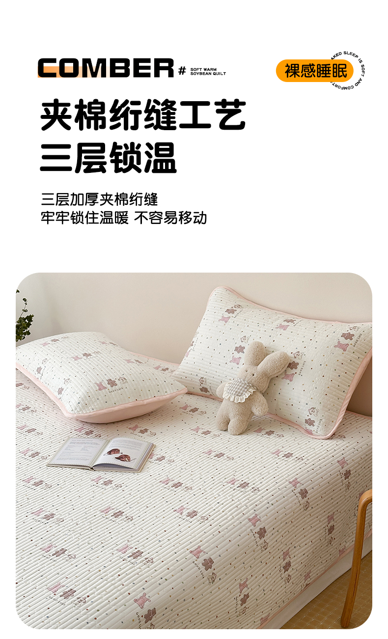 (总)漫时光 2025新款正面纯棉反面宝宝绒印花夹棉砂洗床盖三件套,班尼熊,风铃小兔,花间小兔,花园兔,开心屋,蕾丝小狗,猫咪派对,曲奇小狗,条纹熊,汪汪曲,小狗日记,小伙伴,小熊猫