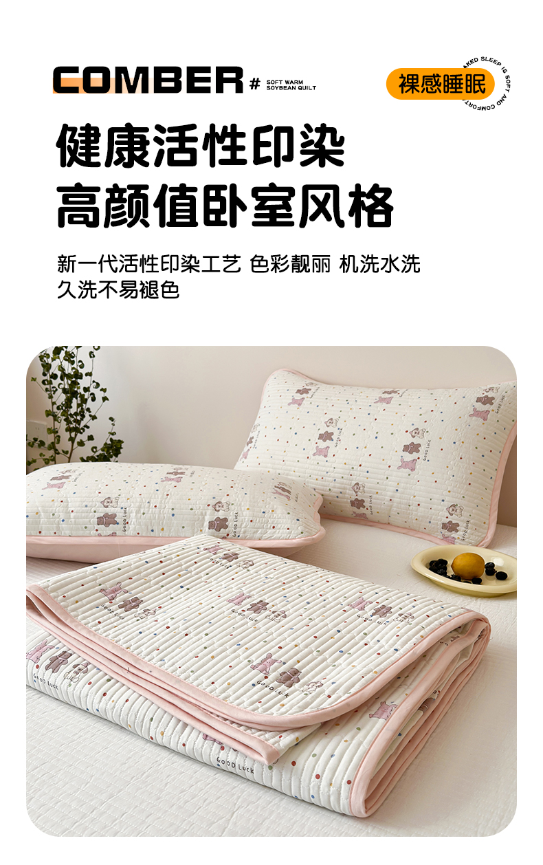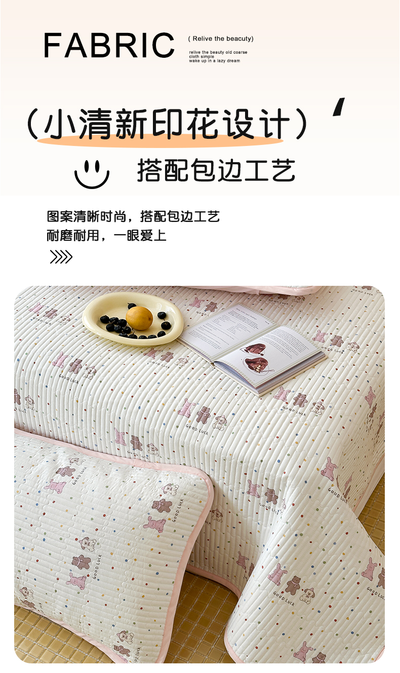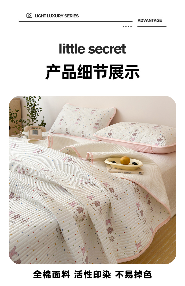 • 91家纺网 家纺一手货源 找家纺 漫时光 2026新款纯棉小清新棉花夹层床盖 幸运派对