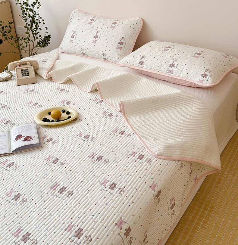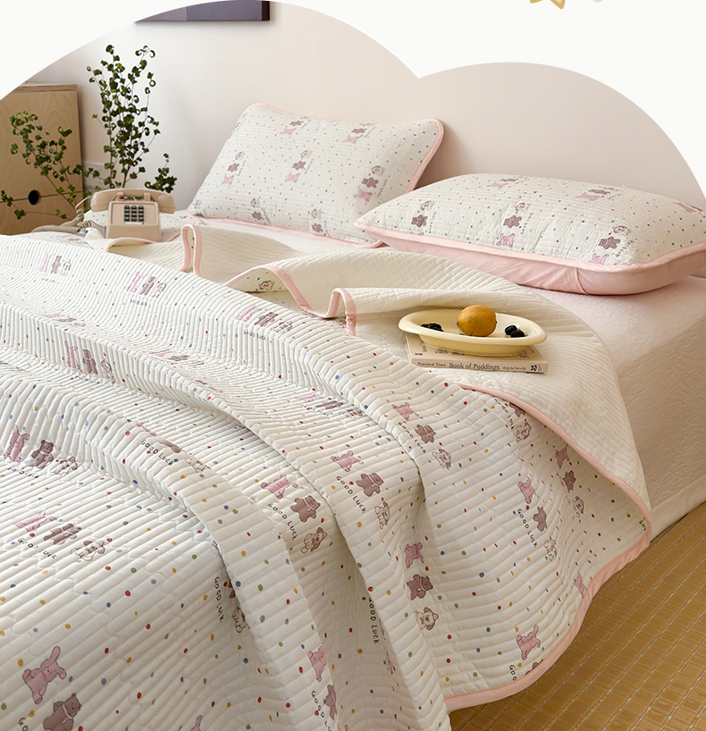 漫时光 2026新款纯棉小清新棉花夹层床盖 幸运派对