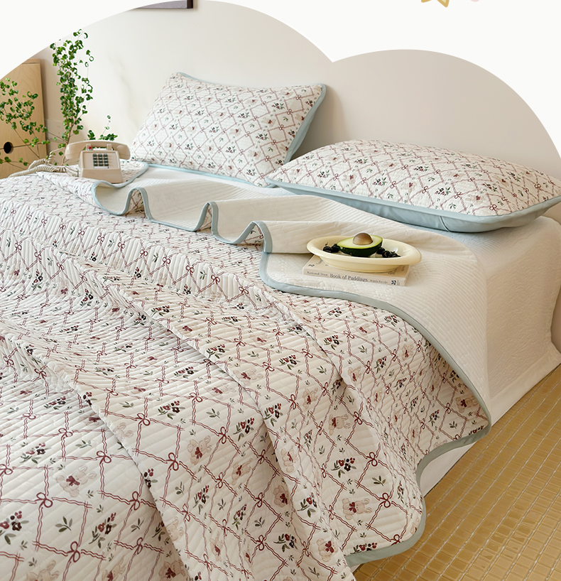 漫时光 2026新款纯棉小清新棉花夹层床盖 旋转木马