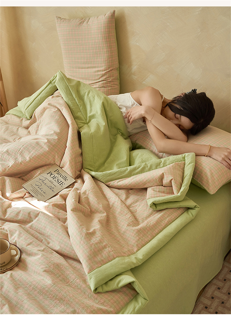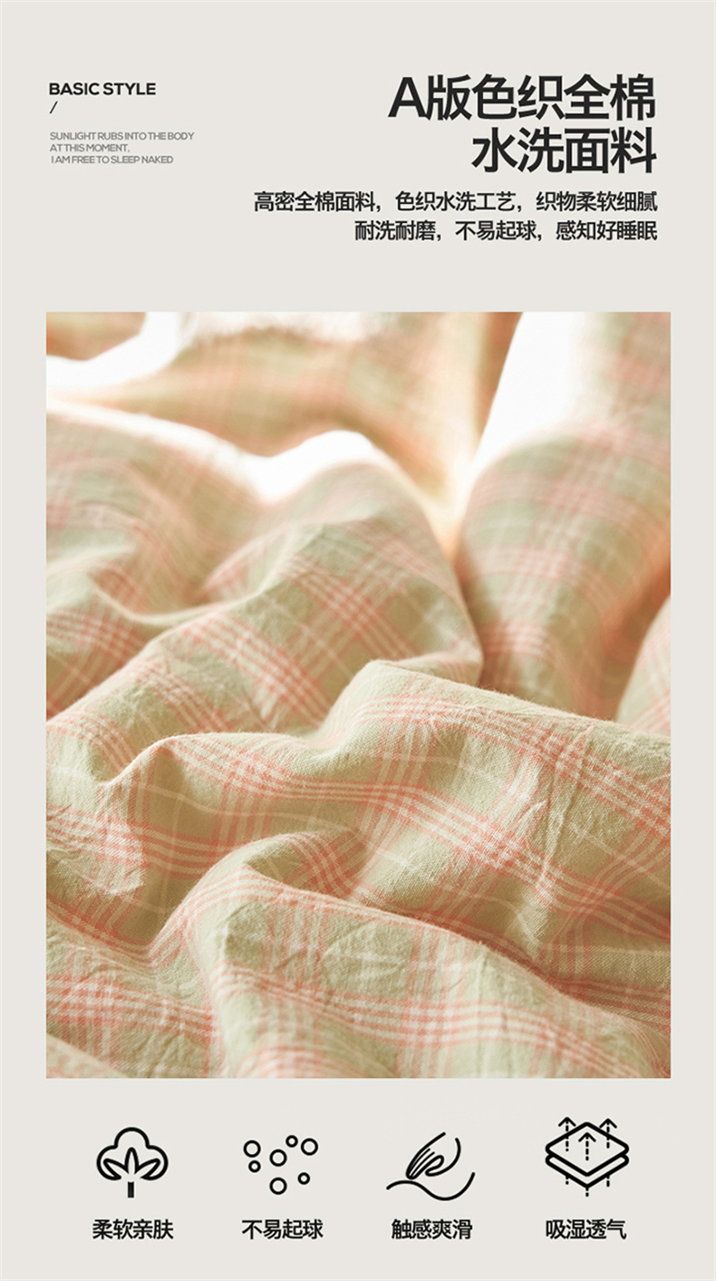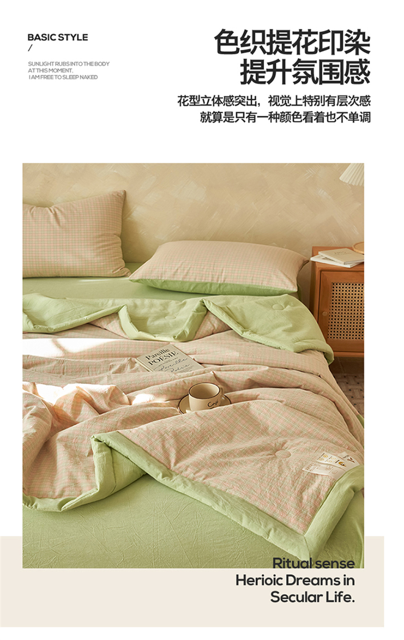 当前位置: 91家纺网 > 商品网购 > 床品套件 > 四件套 > 夏被四件套 > 恒爱家纺 2026新款A类色织全棉水洗夏被四件套 NLS春野-玉
