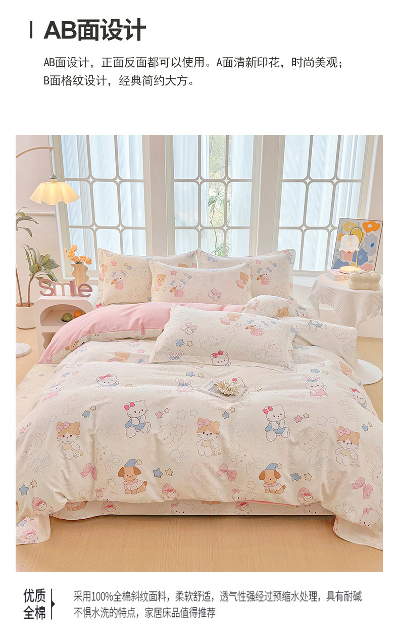 安逸家纺 2026新款全棉纯棉印花12868系列-被套单件单被套 凯蒂宝贝