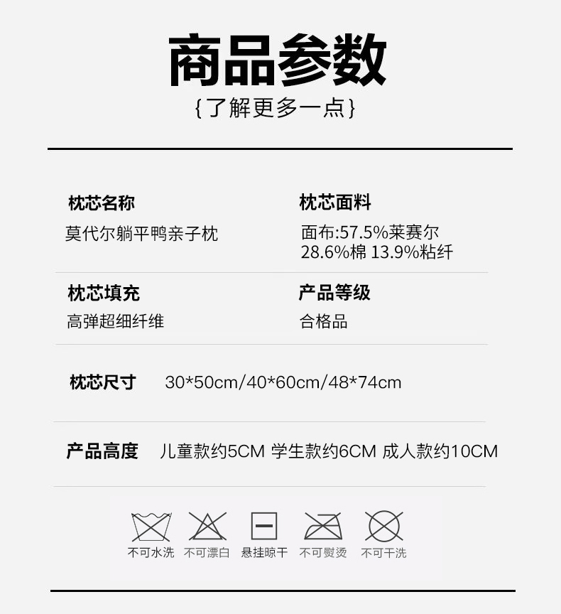 商品名称:鼎晟纺 2026新款一起躺平鸭睡眠亲子枕儿童学生枕头成人枕芯 一起躺平鸭-儿童枕单只装