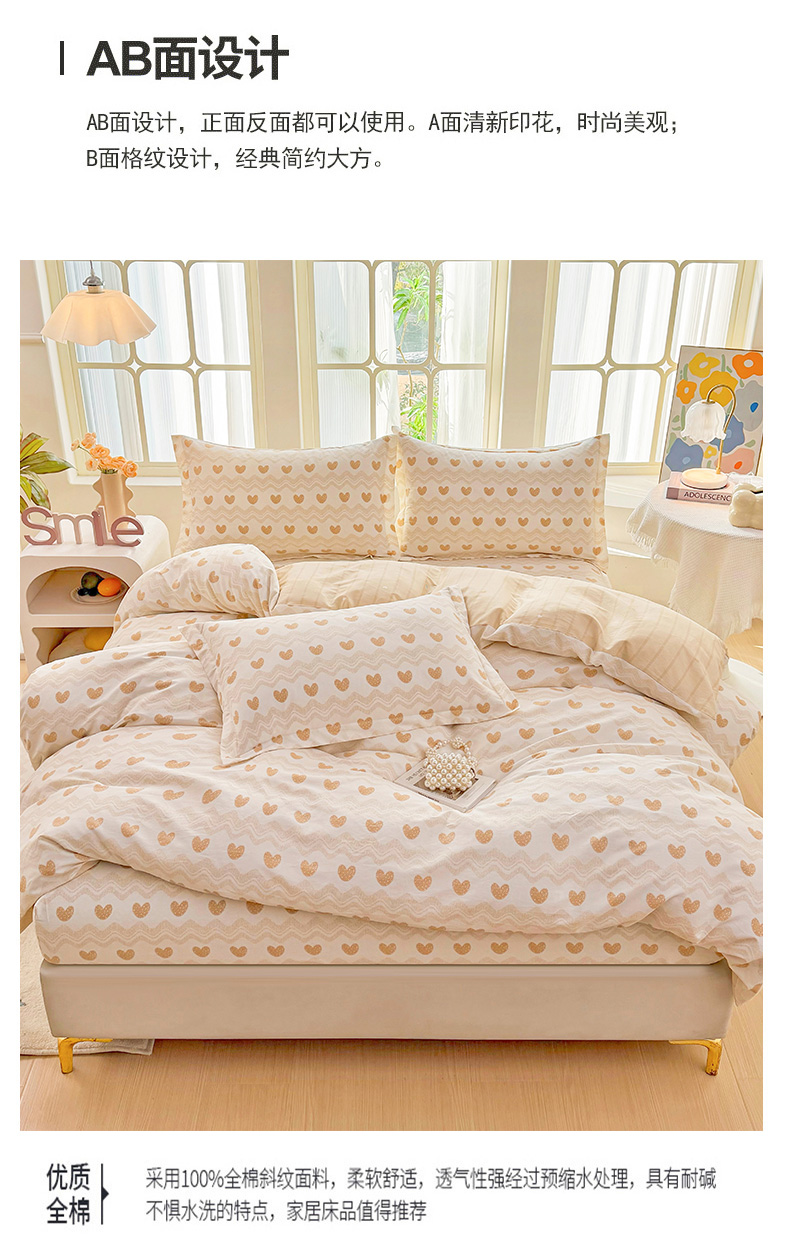 当前位置: 91家纺网 > 商品网购 > 床品套件 > 四件套 > 全棉普通四件套 > 安逸家纺 2026新款12868全棉纯棉床笠四件套床罩学生纯棉床笠款三件套 心动旋律