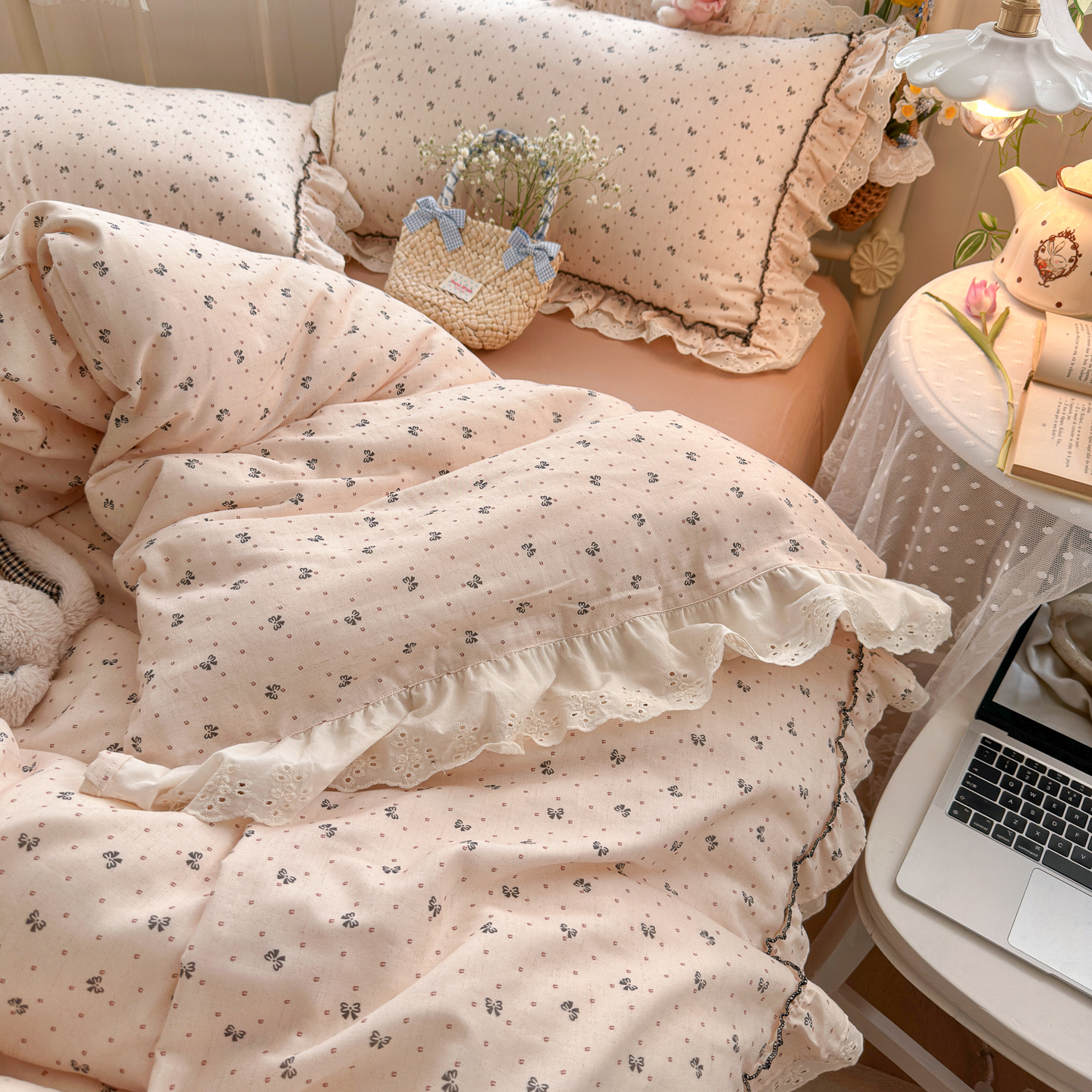 商品名称:(总)锦彩家居 2026新款A类全棉纯棉韩式花边款小清新双层纱四件套-半糖主义系列 (提供买家秀)