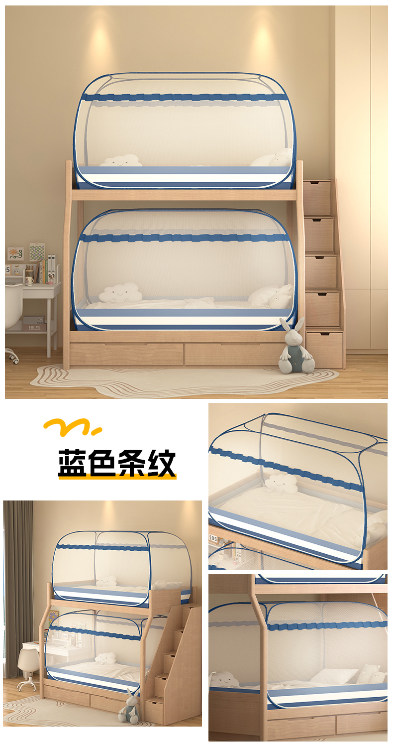 商品名称:佳梦家纺 2026新款蒙古包学生免安装系列蚊帐 条纹灰