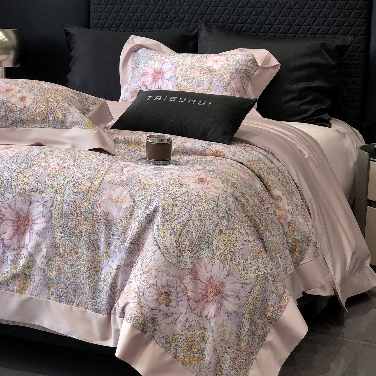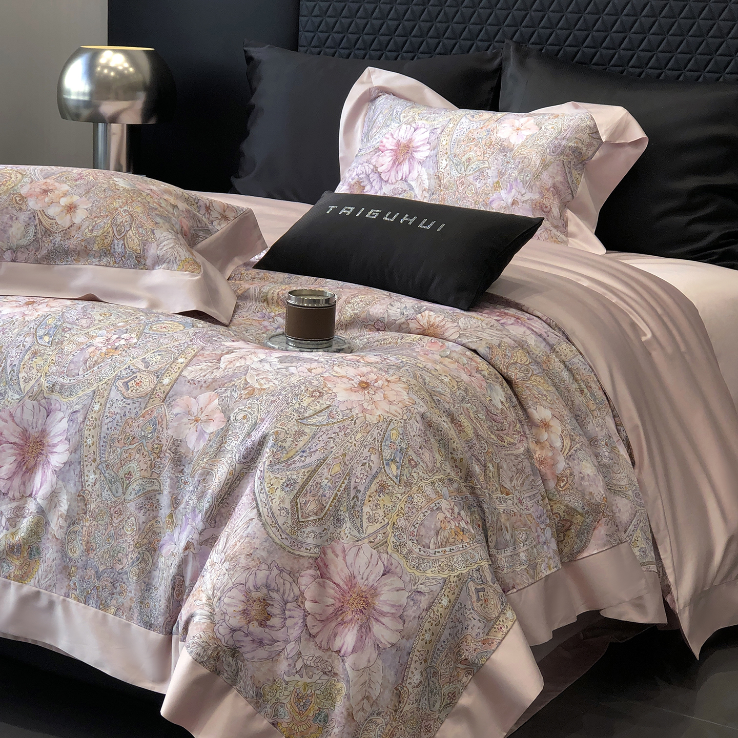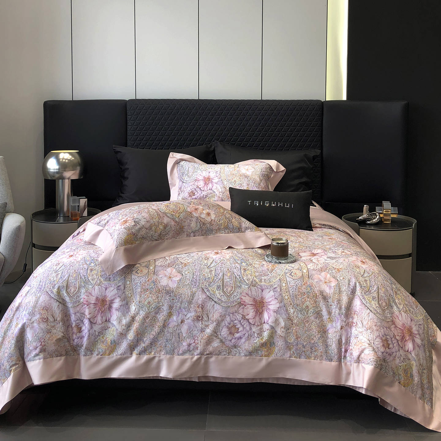 (总)太古汇家居 2025新款活性数码印花四件套,丽奥娜-松石绿,丽奥娜-杏子灰,丽奥娜-樱落紫,莉安娜-粉,莉安娜-卡其,莉安娜-绿,西莉娅-淡紫,西莉娅-粉色
