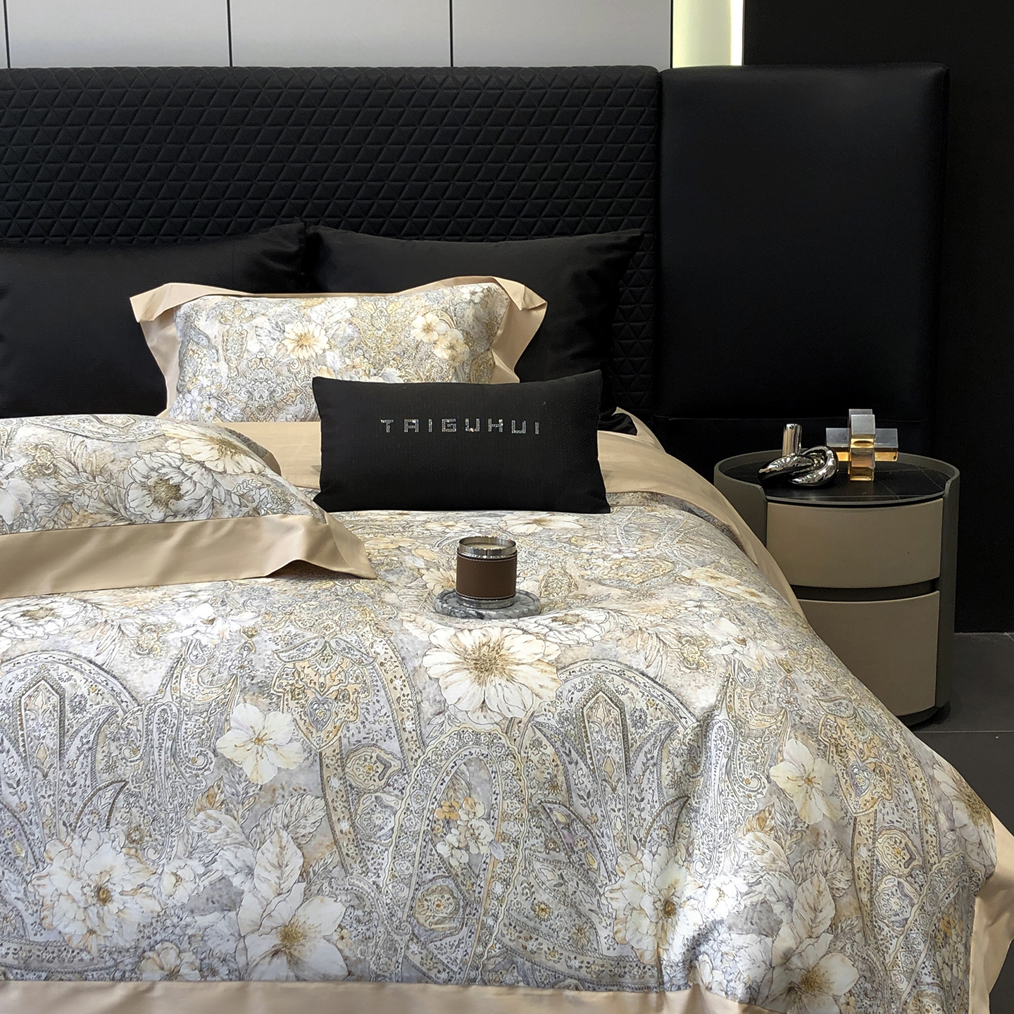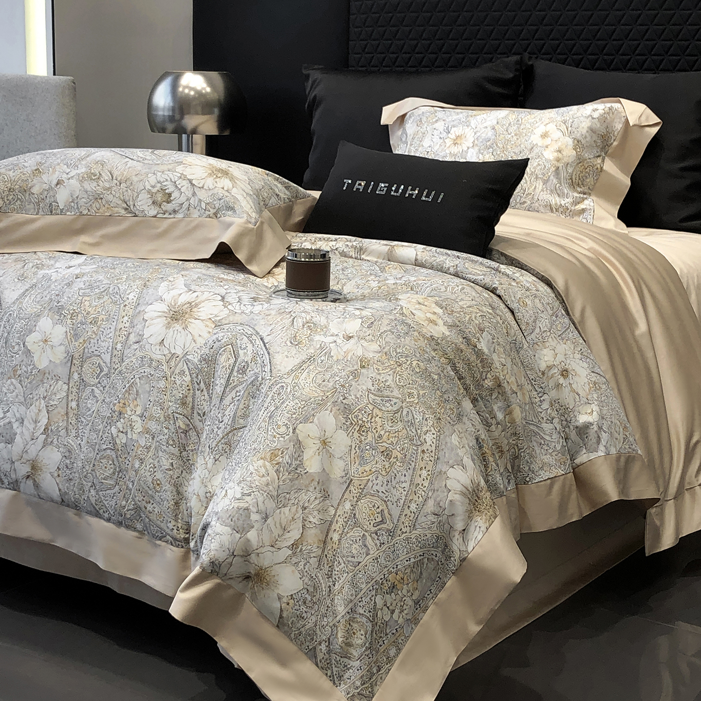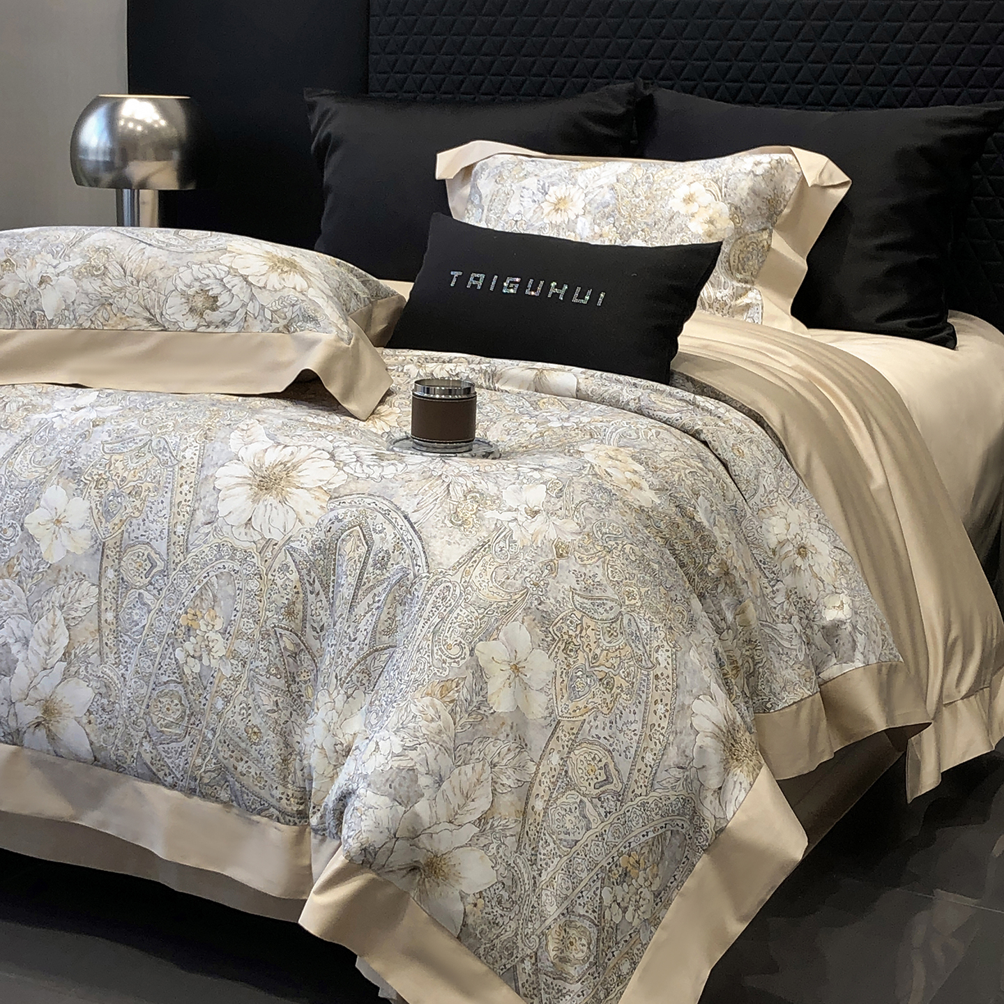 (总)太古汇家居 2025新款活性数码印花四件套,丽奥娜-松石绿,丽奥娜-杏子灰,丽奥娜-樱落紫,莉安娜-粉,莉安娜-卡其,莉安娜-绿,西莉娅-淡紫,西莉娅-粉色