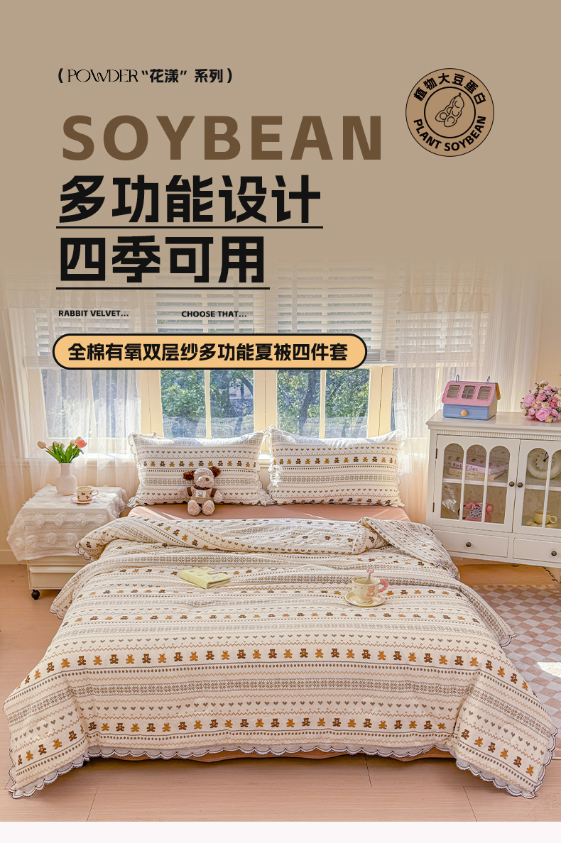 (总) 2024新款秋冬-铃芽-全棉双层皱皱纱20%大豆被,铃芽