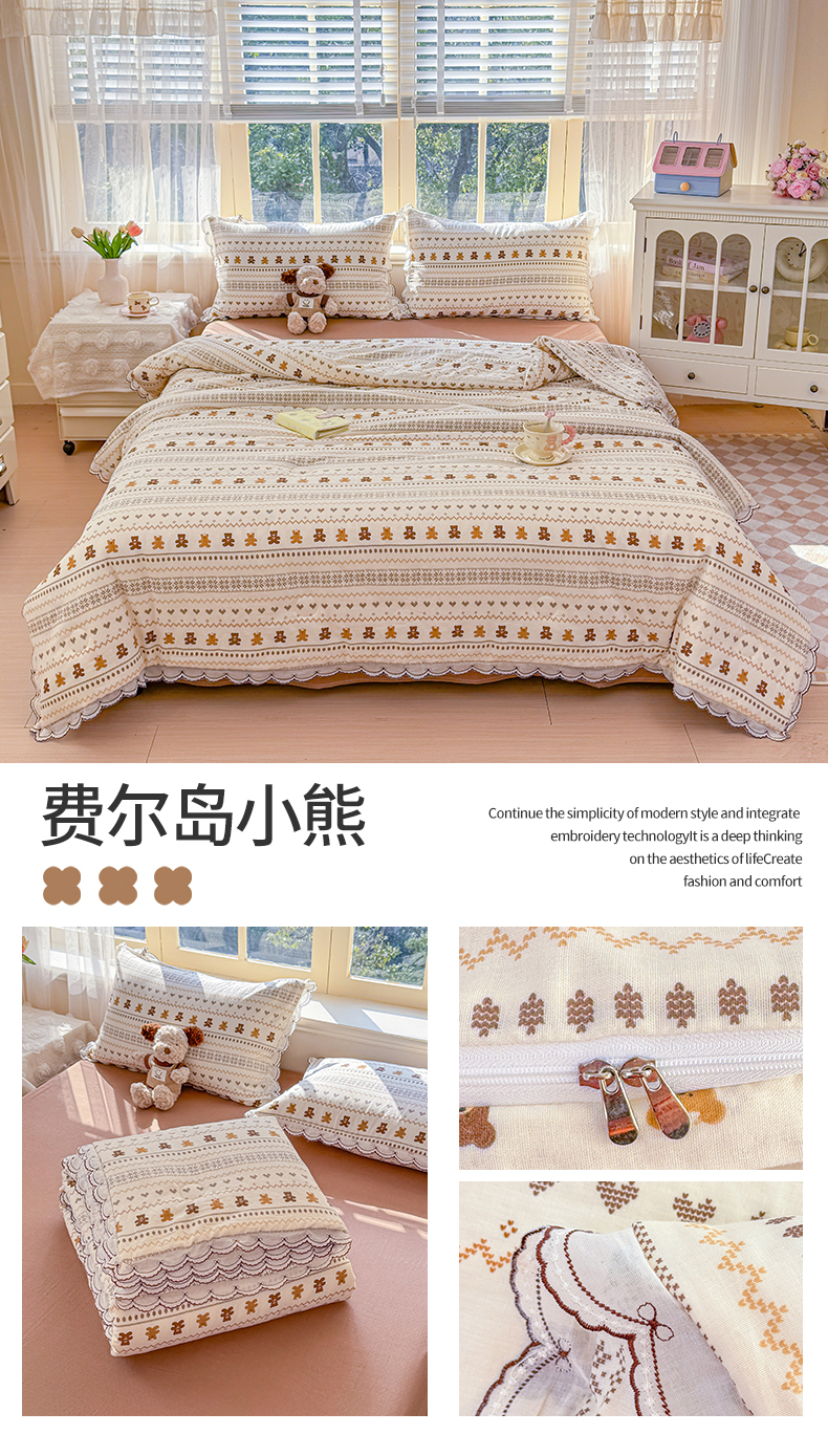 (总)被窝家纺 2026新款全棉纯棉有氧双层纱多功能夏被夏凉被空调被四件套,车厘子,费尔岛小熊,蓝风铃,蓝色泡泡,绿玫瑰,萌星,柠檬花,泡芙狗,清桃-粉,小野花,樱桃甜心,紫罗兰