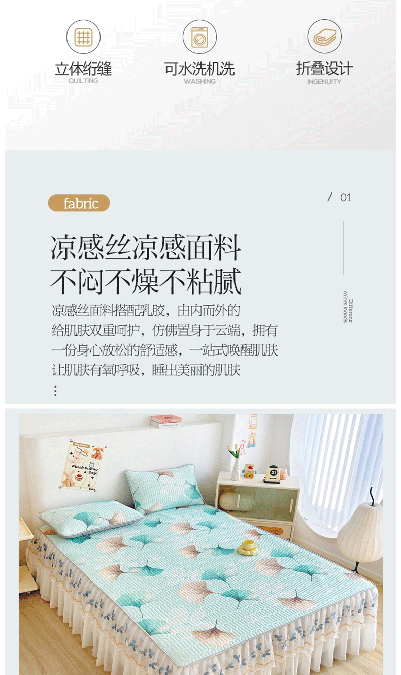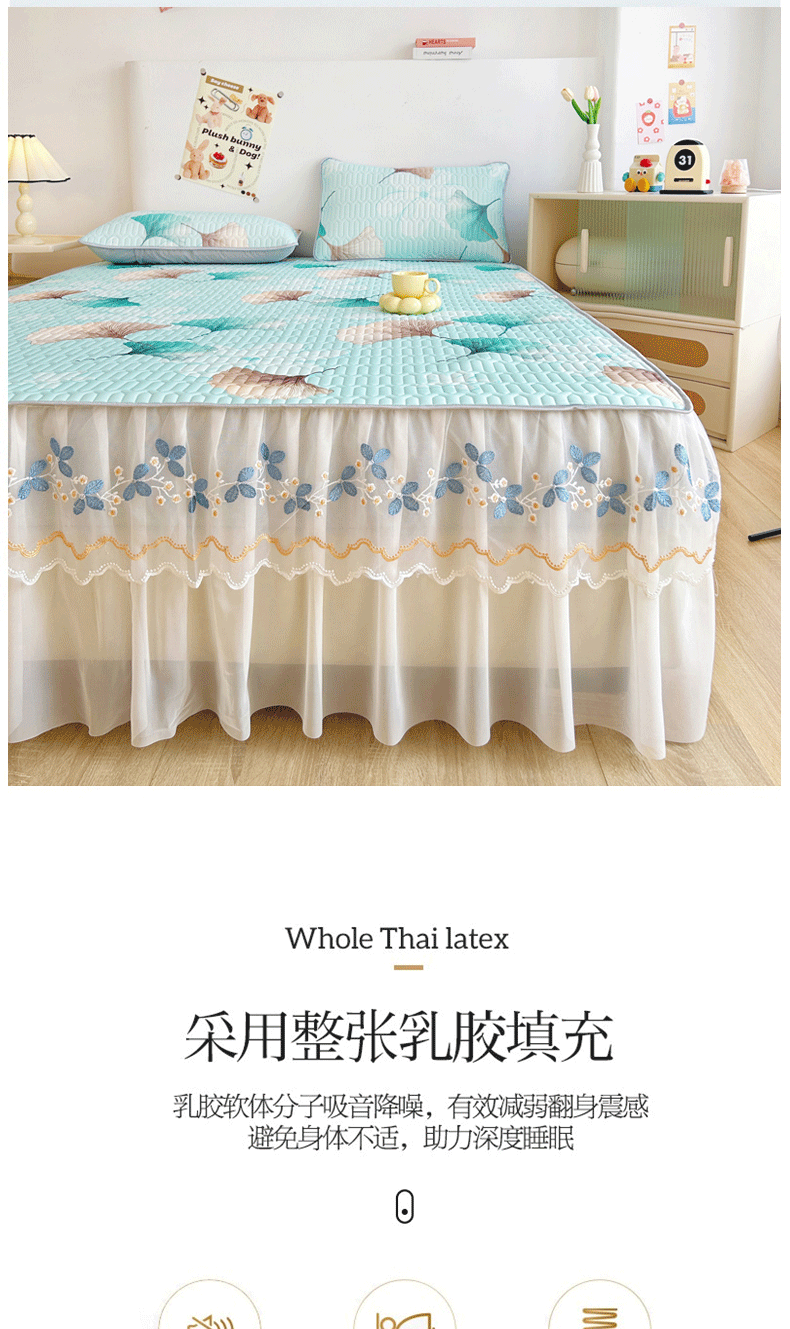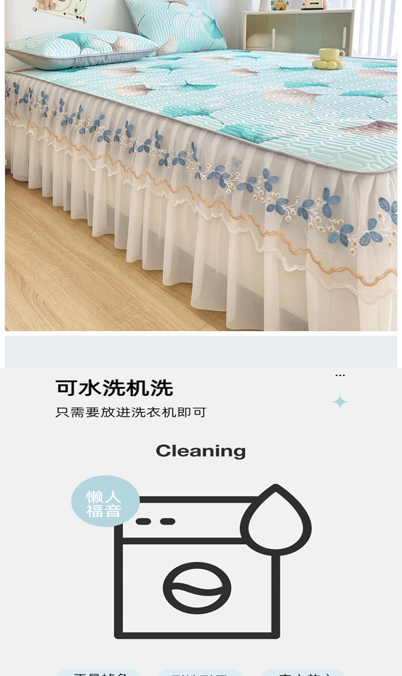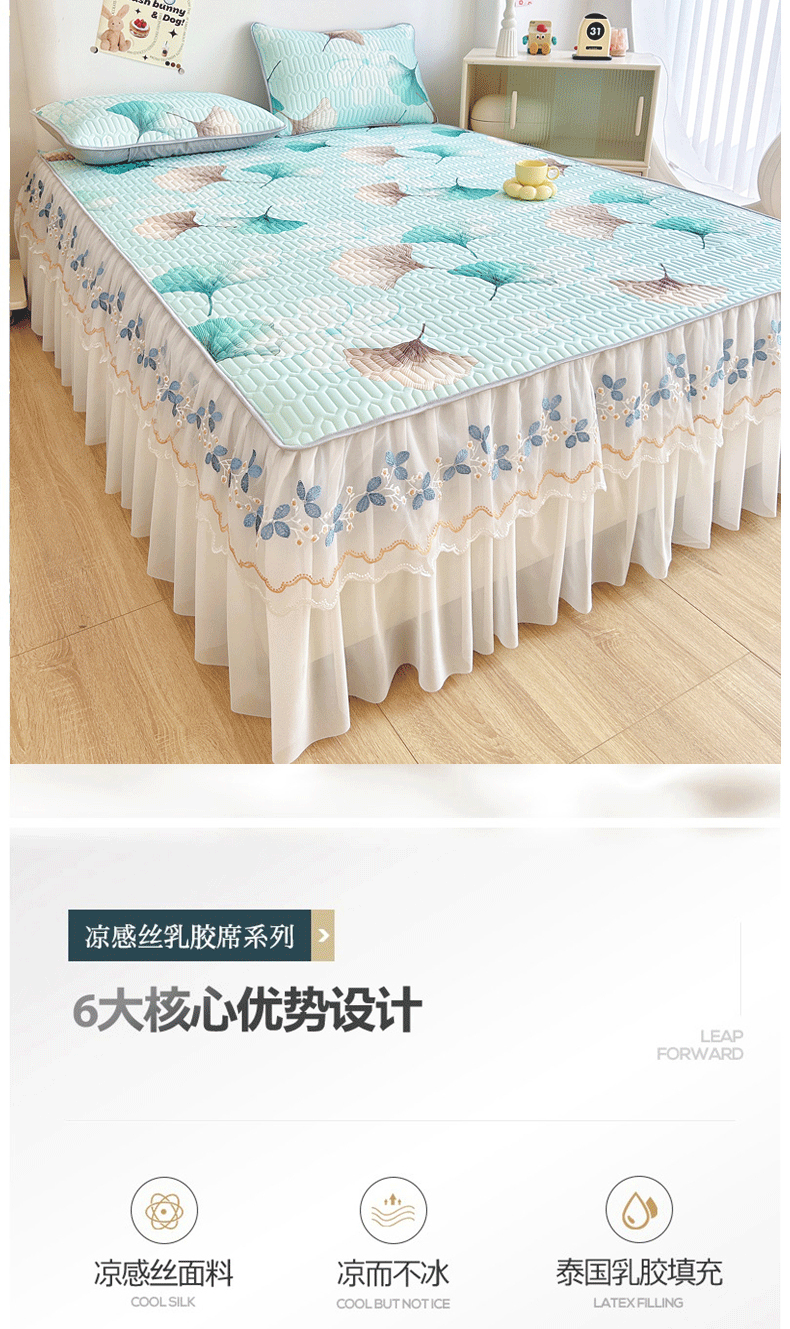 商品名称:能好家纺 2026春夏新款小清新乳胶床裙款凉席席子 叶清新