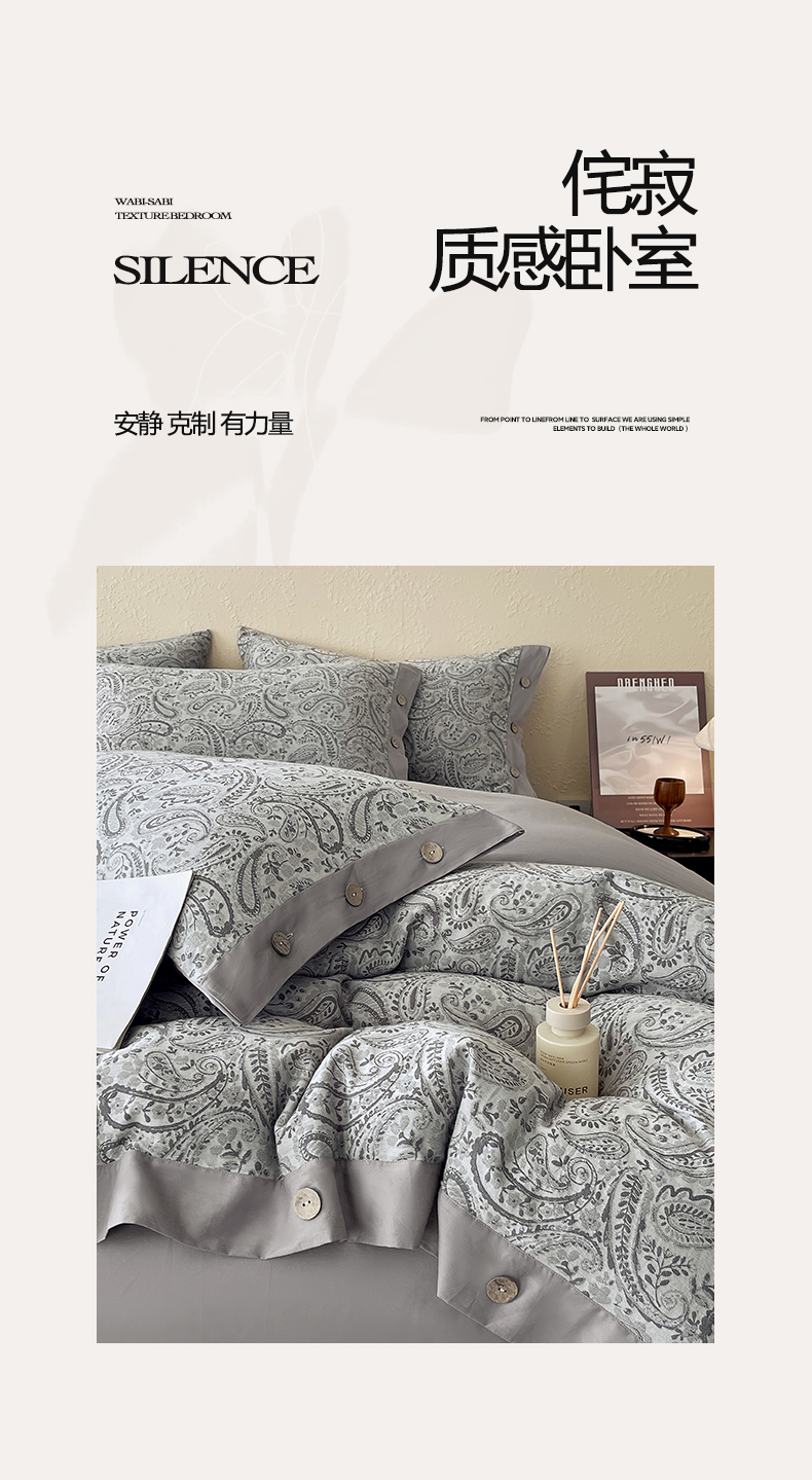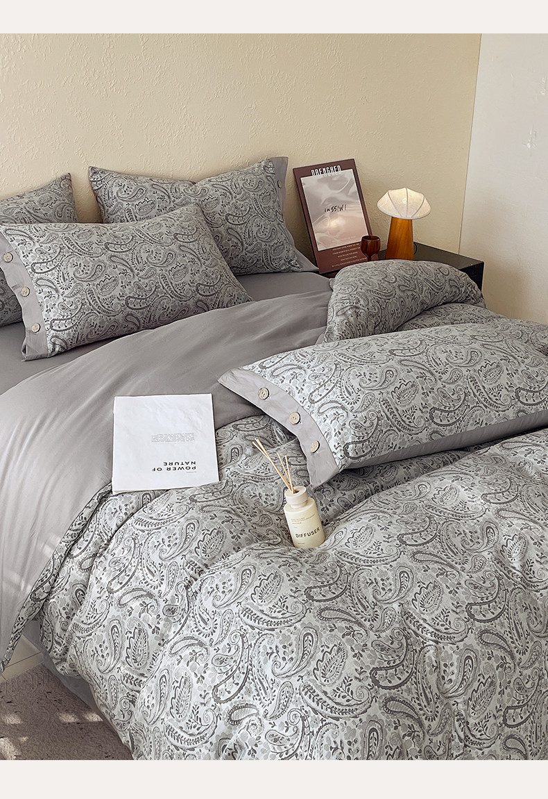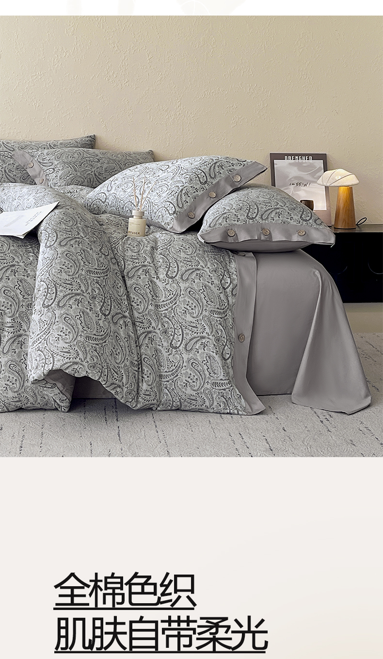 商品名称:帅露家纺 2026新款A类全棉纯棉色织大提花纽扣款四件套 欧若拉-灰