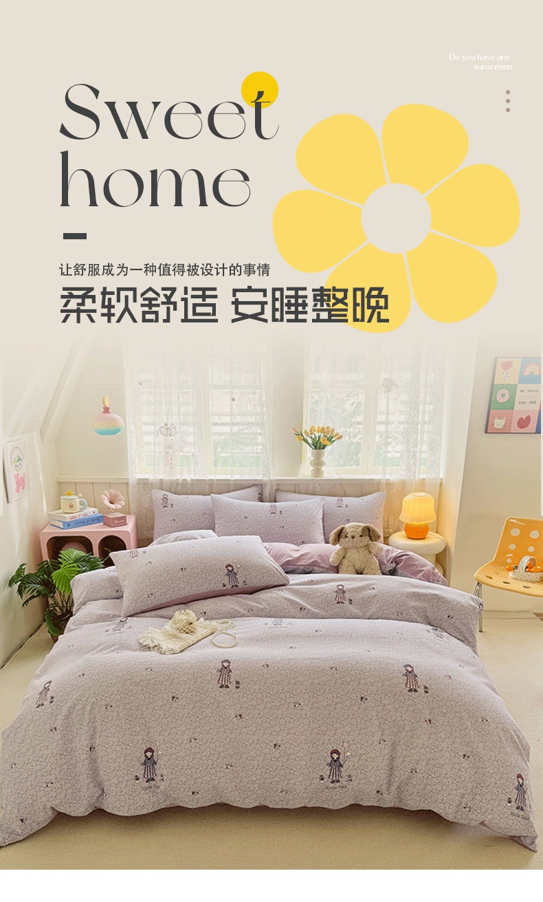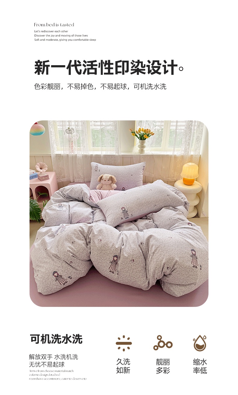 当前位置: 91家纺网 > 商品网购 > 床品套件 > 四件套 > 水洗棉四件套 > 简冠家纺 2026新款仿棉水洗棉四件套 公主小妹
