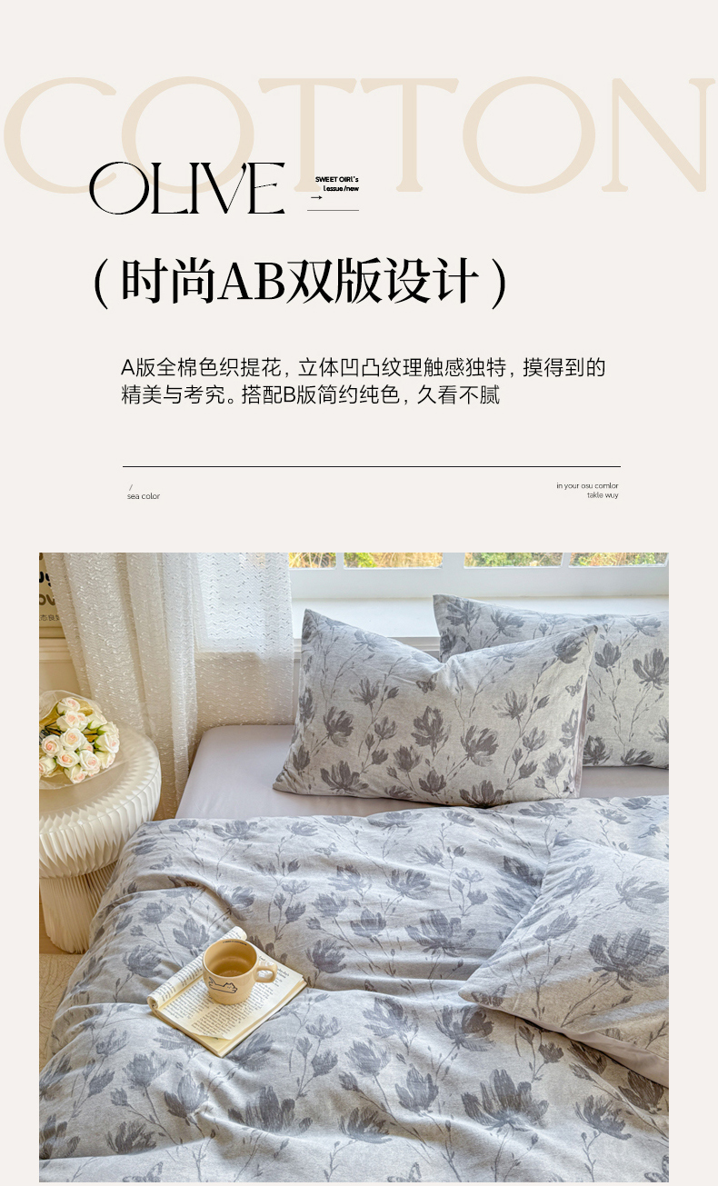 当前位置: 91家纺网 > 商品网购 > 床品套件 > 四件套 > 全棉普通四件套 > 苏东来家纺 2026新款A类60支全棉长绒棉纯棉色织提花四件套水洗纯棉厚织提花肌理被套四件套 南枝灰