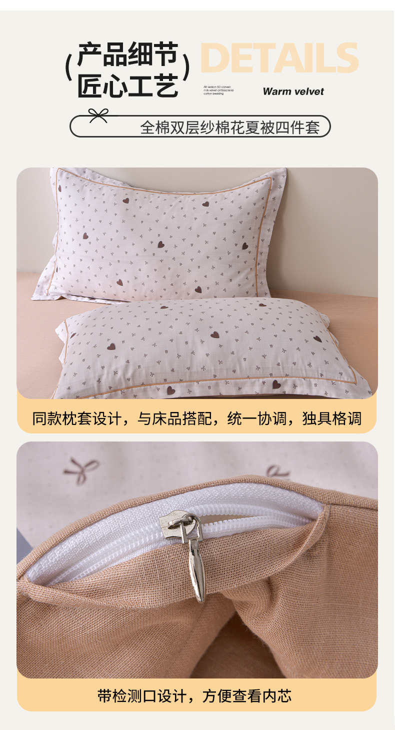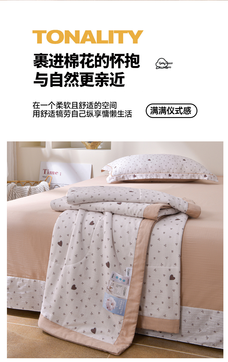 当前位置: 91家纺网 > 商品网购 > 被子 > 夏被 > 金昱纺 2026新款A类全棉双层纱新疆棉花夏被四件套(带检测报告,包检测,有微信+买家秀) 甜心结-咖