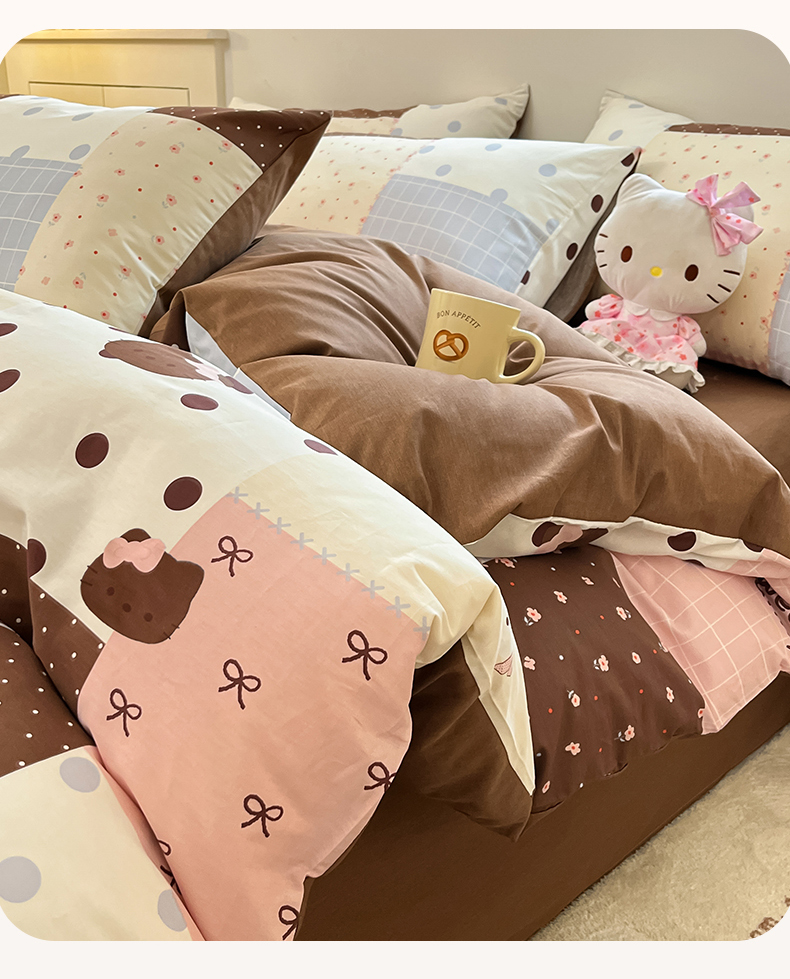 当前位置: 91家纺网 > 商品网购 > 床品套件 > 四件套 > 全棉普通四件套 > 博雅 2026新款全棉纯棉小卡通印花四件套 小版-咖格蝴蝶结喵