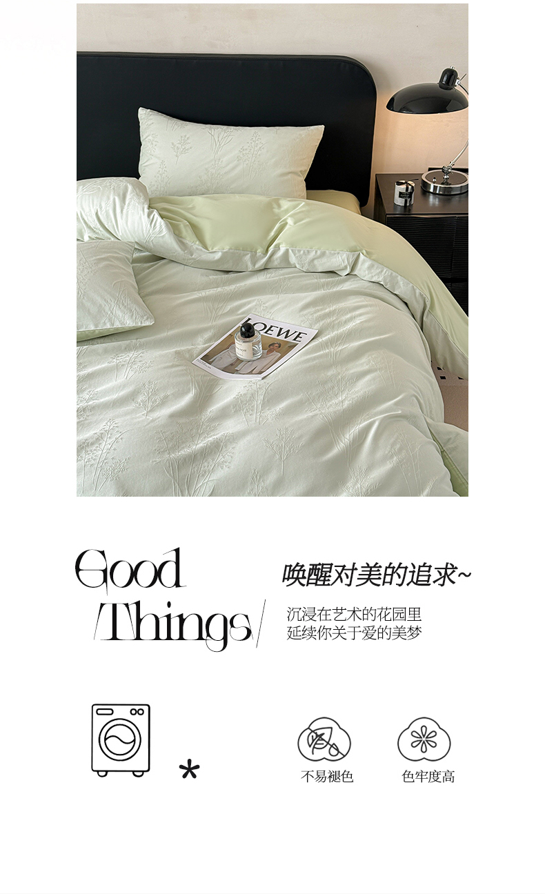 (总)雅萱家纺 2026新款60支提花全棉四件套,春草粉,春草绿,繁花绿,花影粉,肌理灰,流星米,流星紫