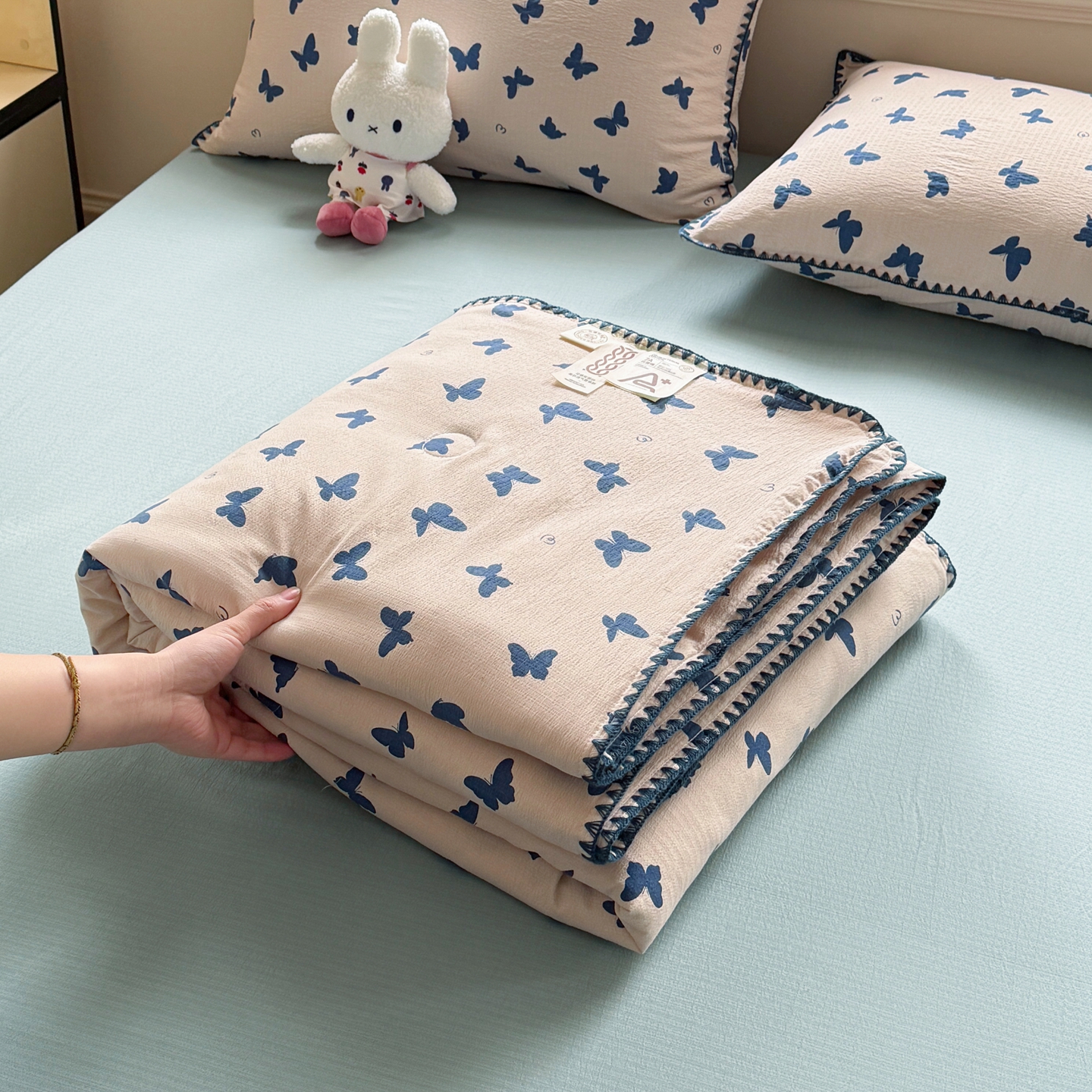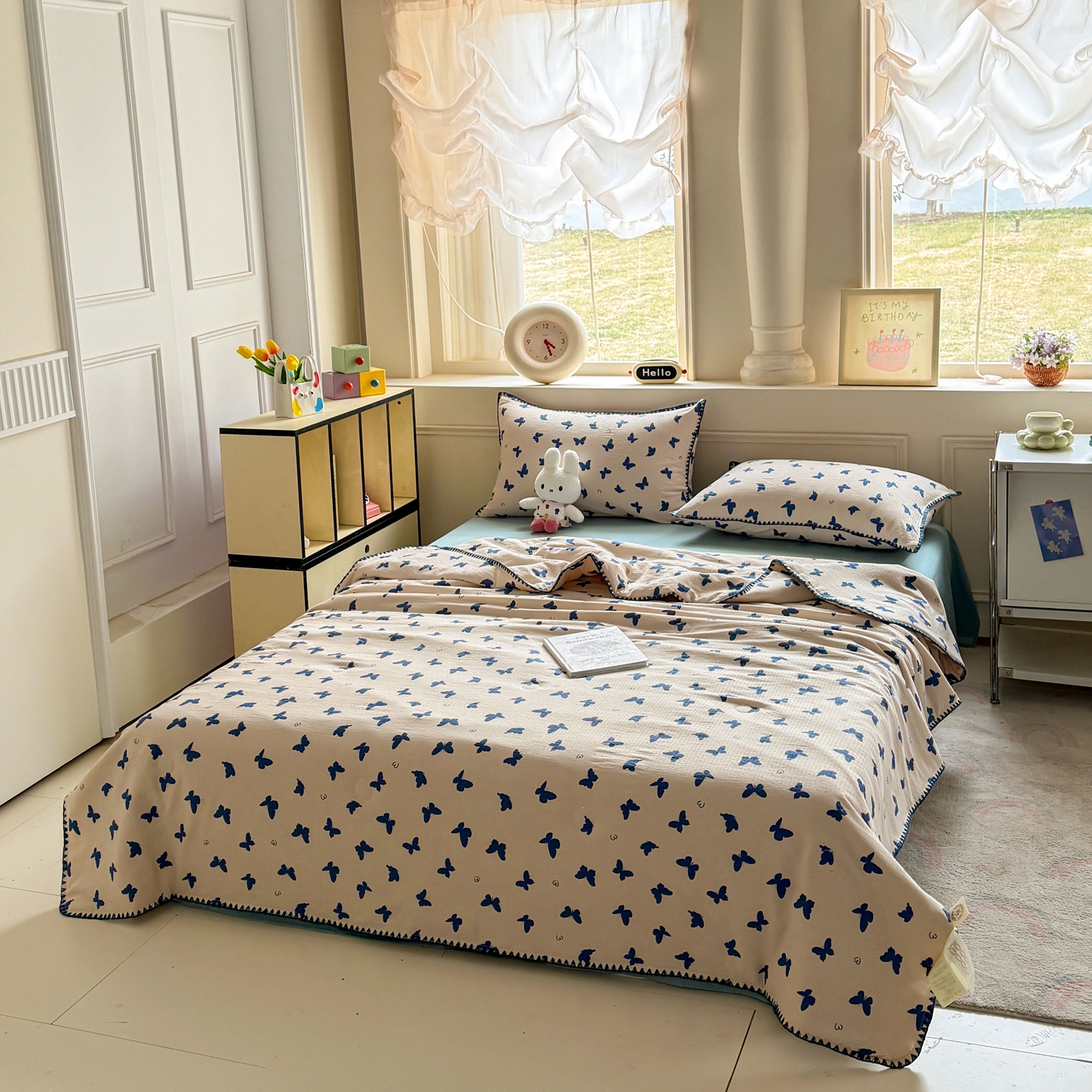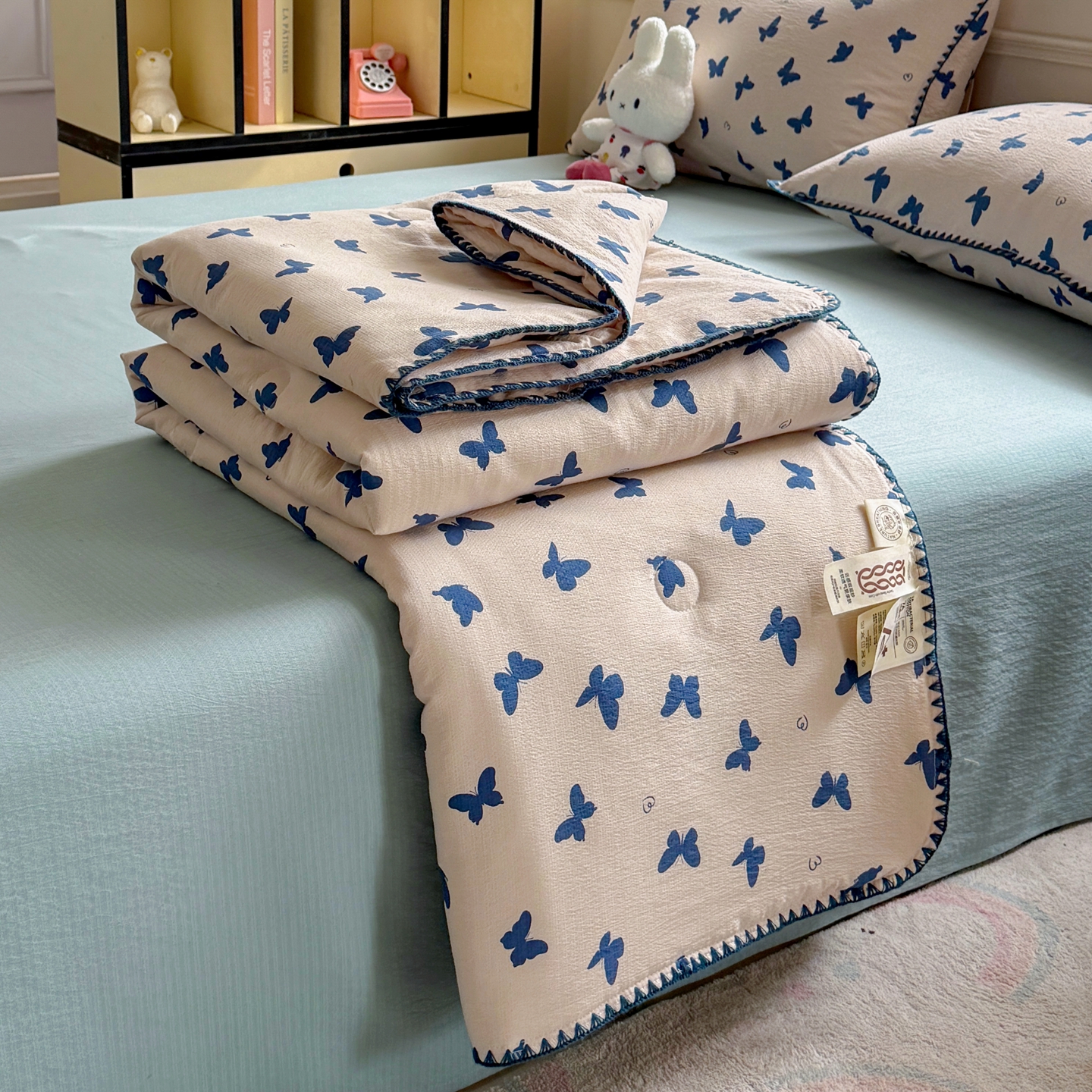 当前位置: 91家纺网 > 商品网购 > 床品套件 > 四件套 > 夏被四件套 > 2026新款春夏云感双层纱母婴级三角针夏被贝壳边夏凉被贝壳绣 蝴蝶剪影