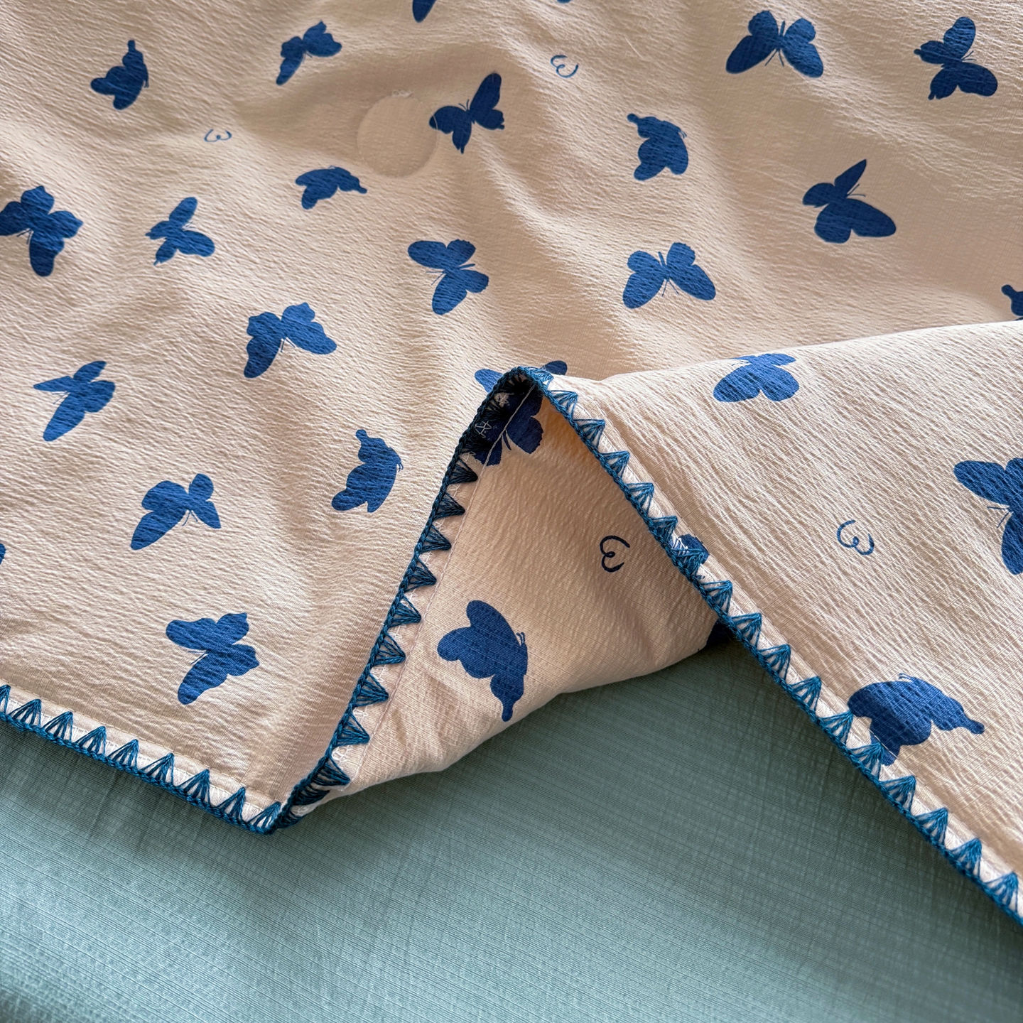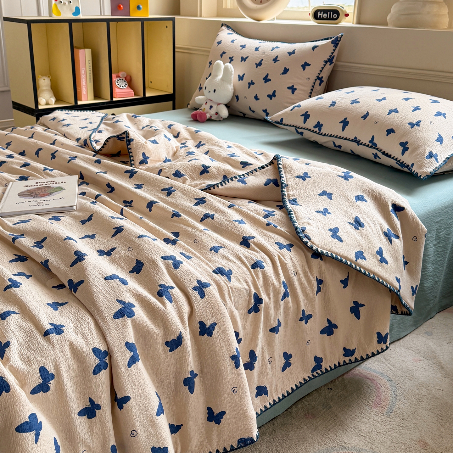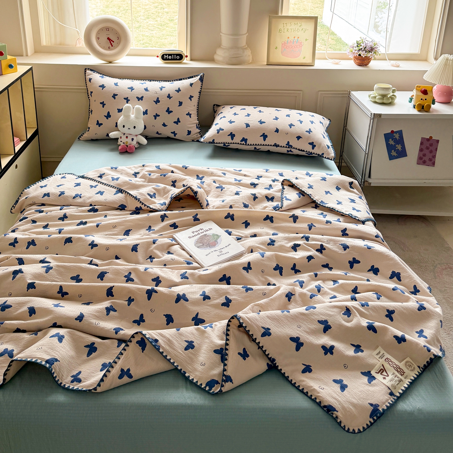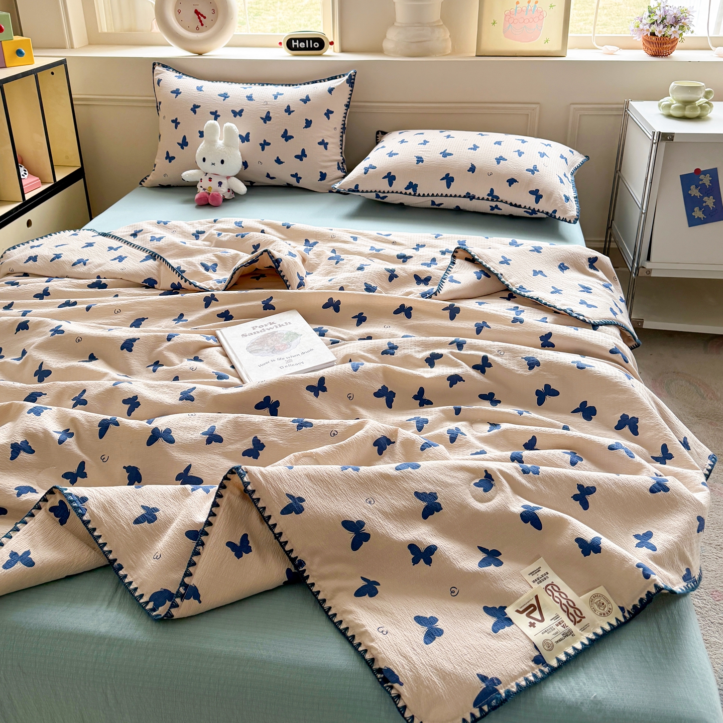 当前位置: 91家纺网 > 商品网购 > 床品套件 > 四件套 > 夏被四件套 > 2026新款春夏云感双层纱母婴级三角针夏被贝壳边夏凉被贝壳绣 蝴蝶剪影