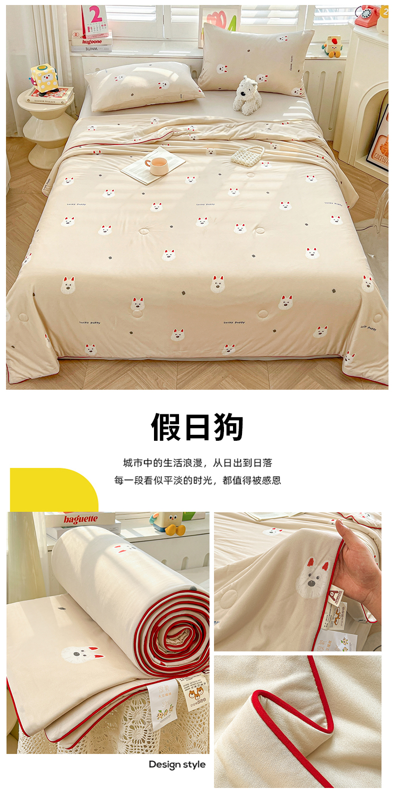 商品名称:优被业 2026新款A类牛奶丝针织棉软糯凉感大豆夏被空调被夏凉被(20%大豆国标包检测) 俏皮狗