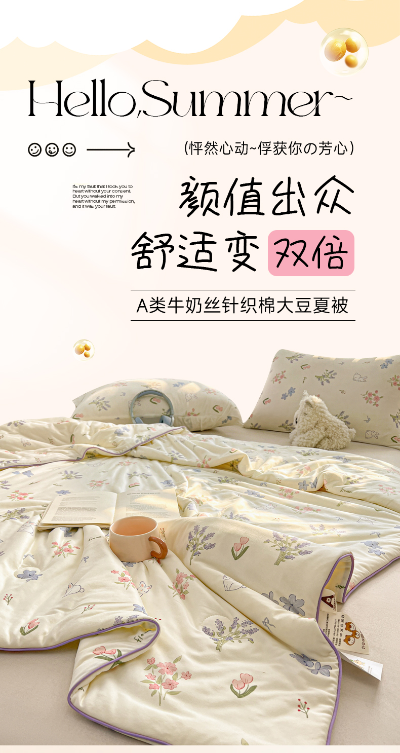 (总)优被业 2025新款A类全棉小清新大豆夏被,KT猫,宁夏,小夜猫,小迷糊,快乐小狗,泡泡糖,草莓园,集美