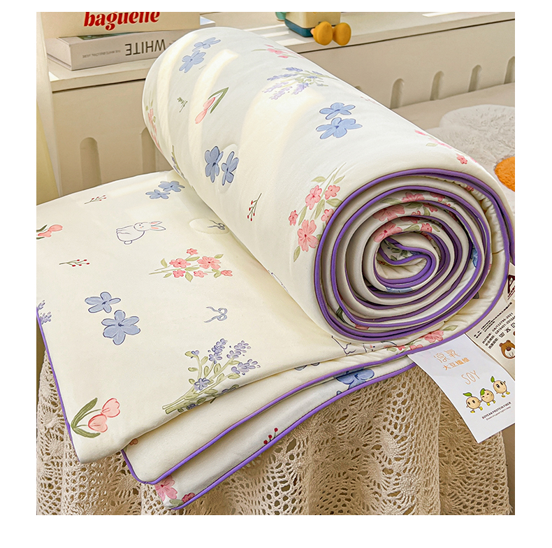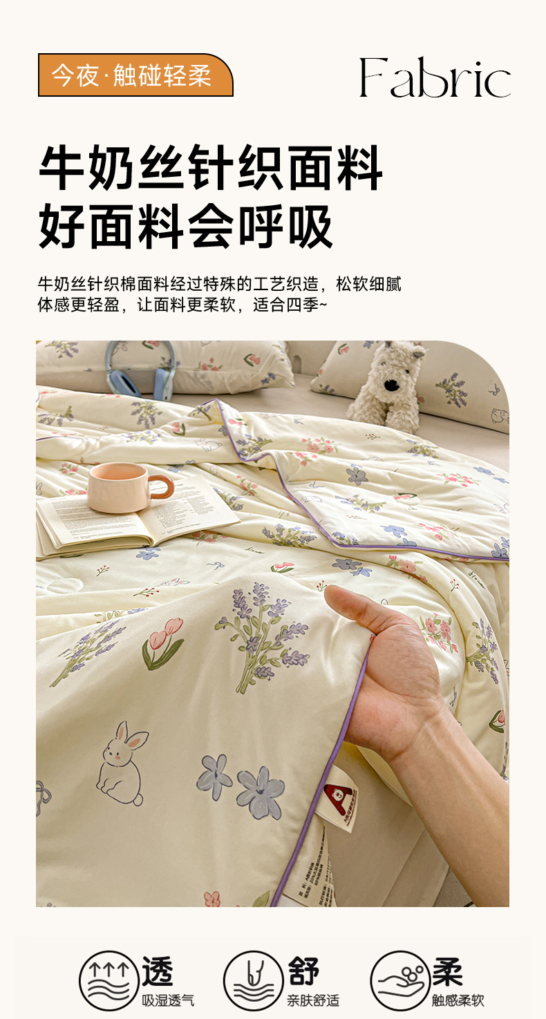 商品名称:优被业 2026新款A类牛奶丝针织棉软糯凉感大豆夏被空调被夏凉被(20%大豆国标包检测) 紫萱兔