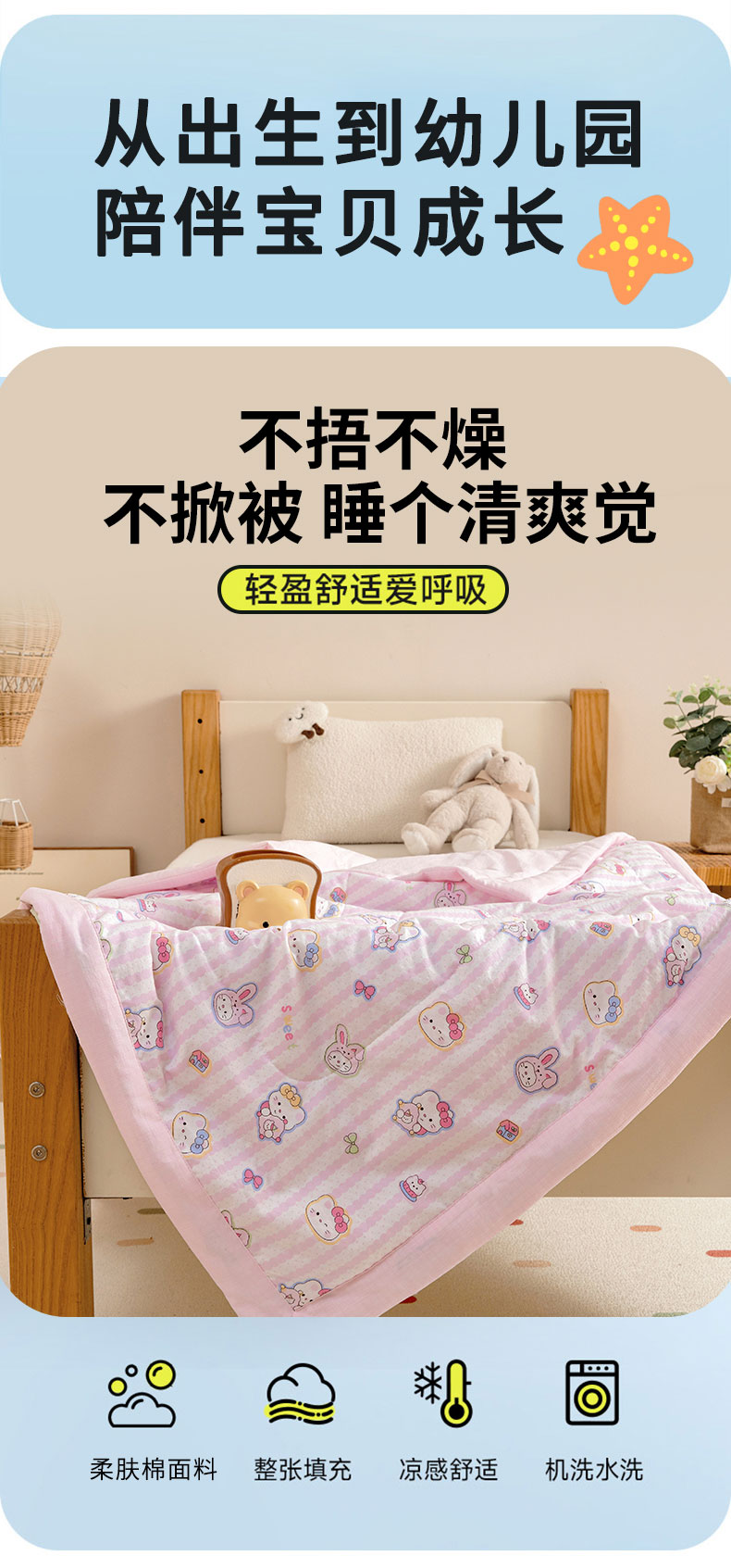 (总)御棉坊 御棉坊2026萌趣A类凉感幼儿园夏凉被宝宝午睡薄被子儿童空调被夏被,组合图仅做展示不可下单,多多熊,乖乖兔,萌萌派,木马乐园-粉,木马乐园-米,皮皮怪,三小只