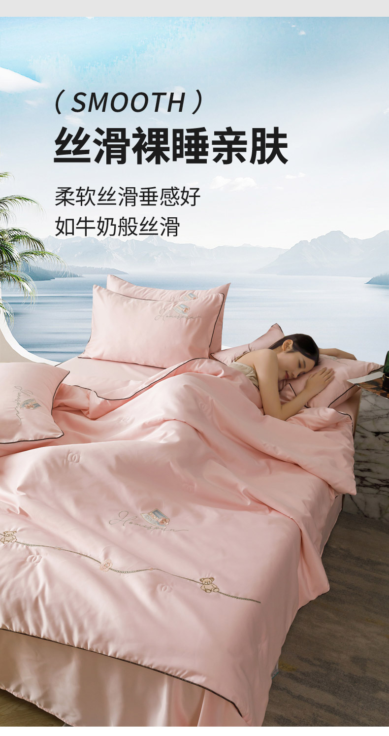 丝印良品 2026新款刺绣水洗真丝夏被四件套公主日记系列-风格一 公主日记-樱花粉