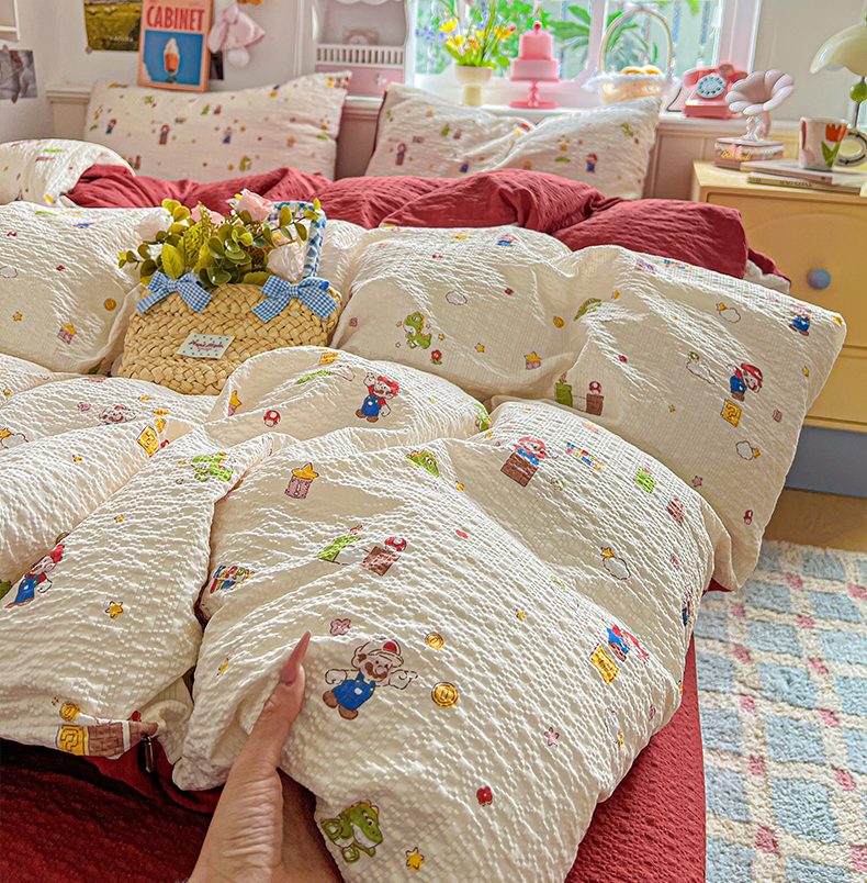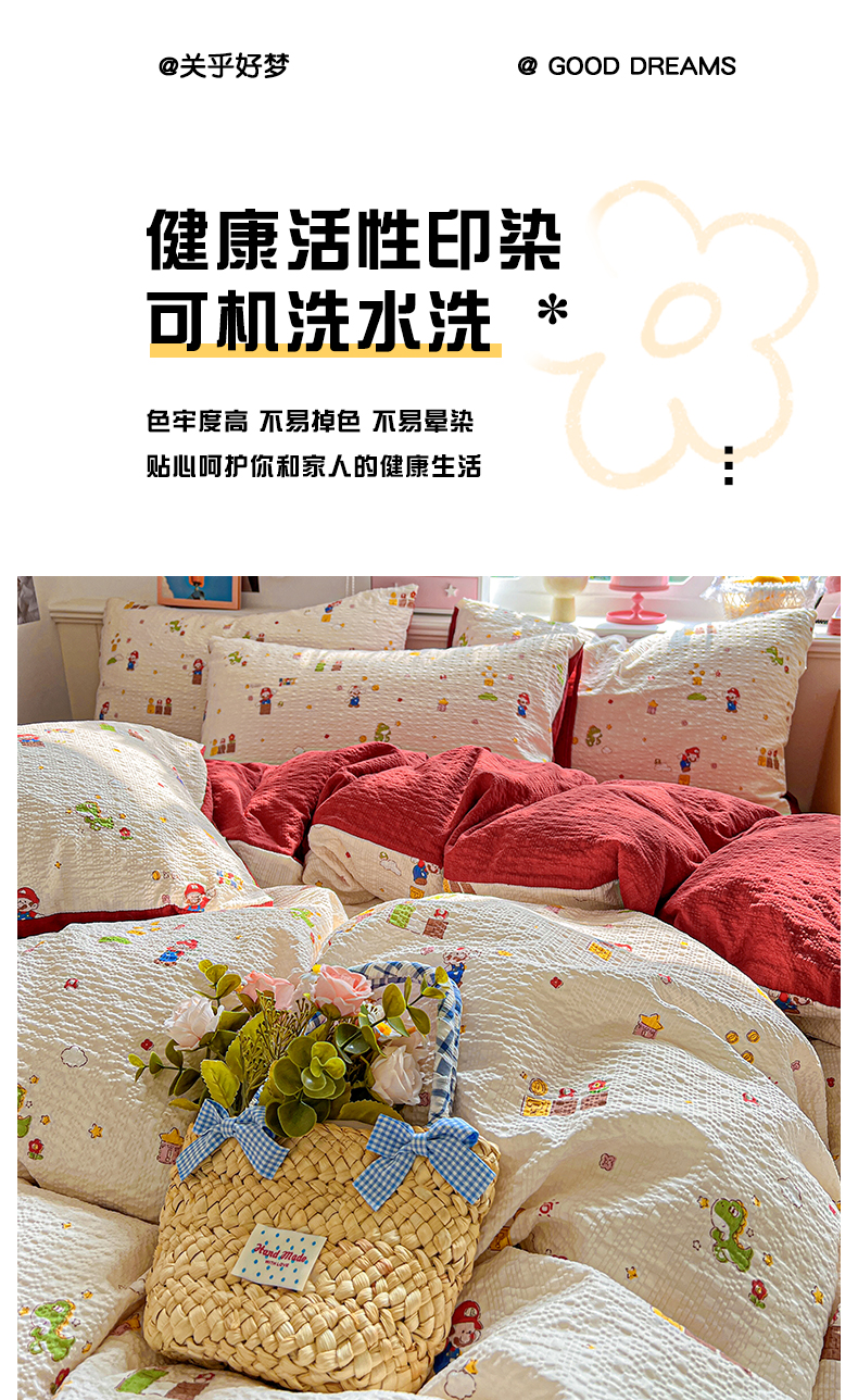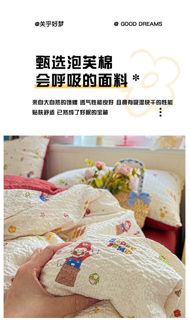 商品名称:(总)悦织湾家纺 2026新款泡芙棉印花四件套单品单被套枕套时尚轻奢卡通小碎花学生宿舍用品三四件套