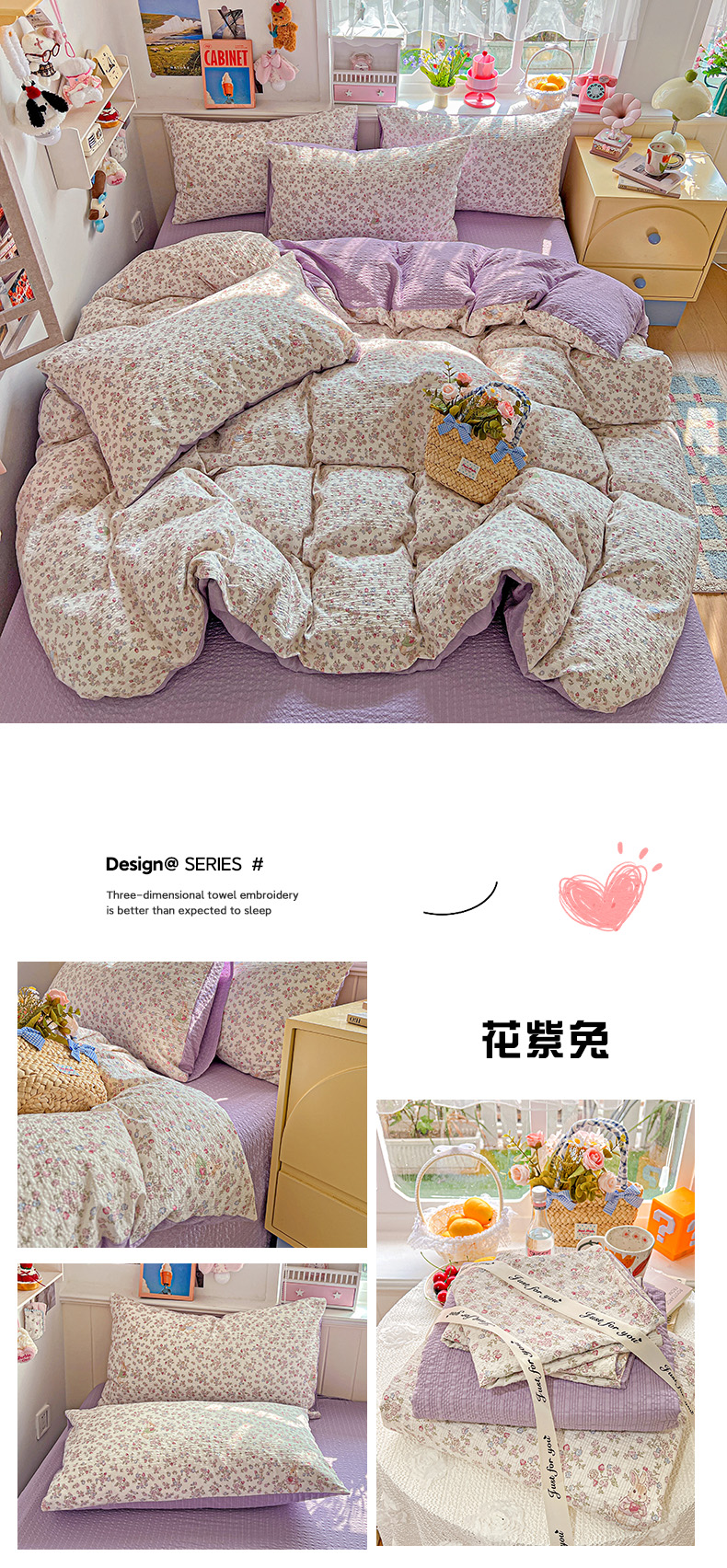 (总)悦织湾家纺 2026新款泡芙棉印花四件套单品单被套枕套时尚轻奢卡通小碎花学生宿舍用品三四件套